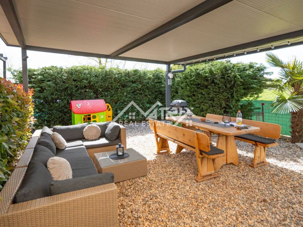 The property sits on a landscaped and fenced plot of approx. 380 m², surrounded by olive trees and vineyards, offering total privacy and tranquility away from urban crowds.
