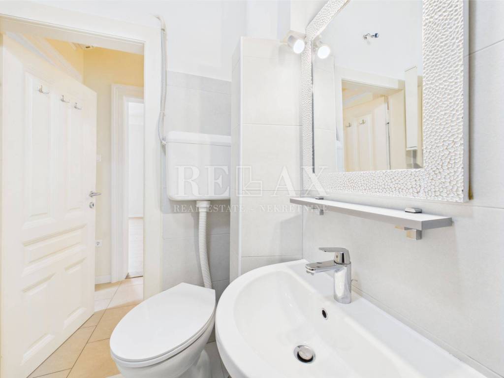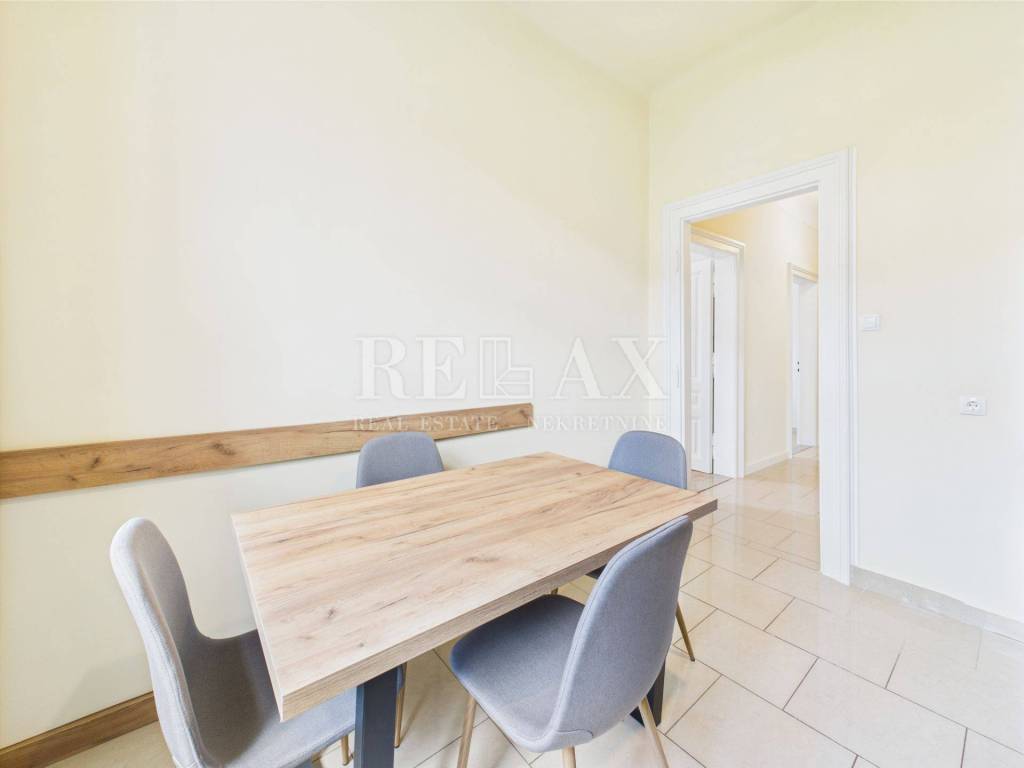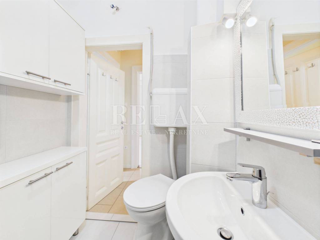 L’appartamento è parzialmente arredato, con cucina attrezzata e servizi igienici, e sono installati due condizionatori d’aria. Vi è la possibilità di usufruire di un posto auto, particolarmente prezioso nel cuore di Opatija.