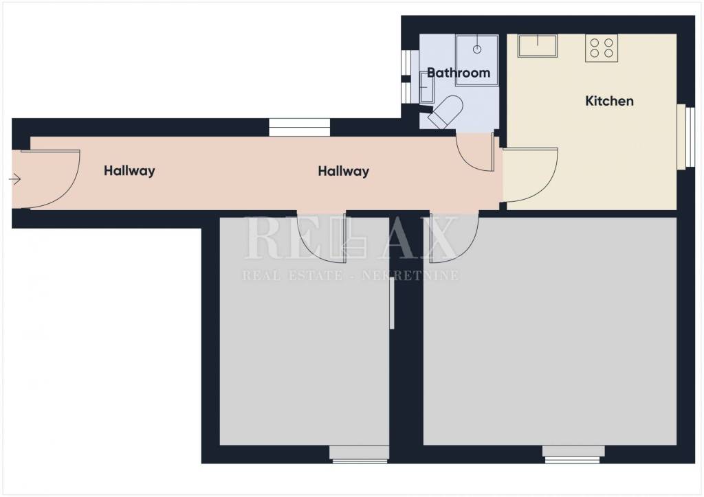 La disposizione è eccellente — il corridoio d’ingresso si estende per tutto l’appartamento e conduce alla cucina con zona pranzo. Sul lato destro si trovano due ampie stanze, che possono essere adibite a due camere da letto o a una camera e un soggiorno, a seconda delle esigenze. Sul lato sinistro del corridoio si trova il bagno.