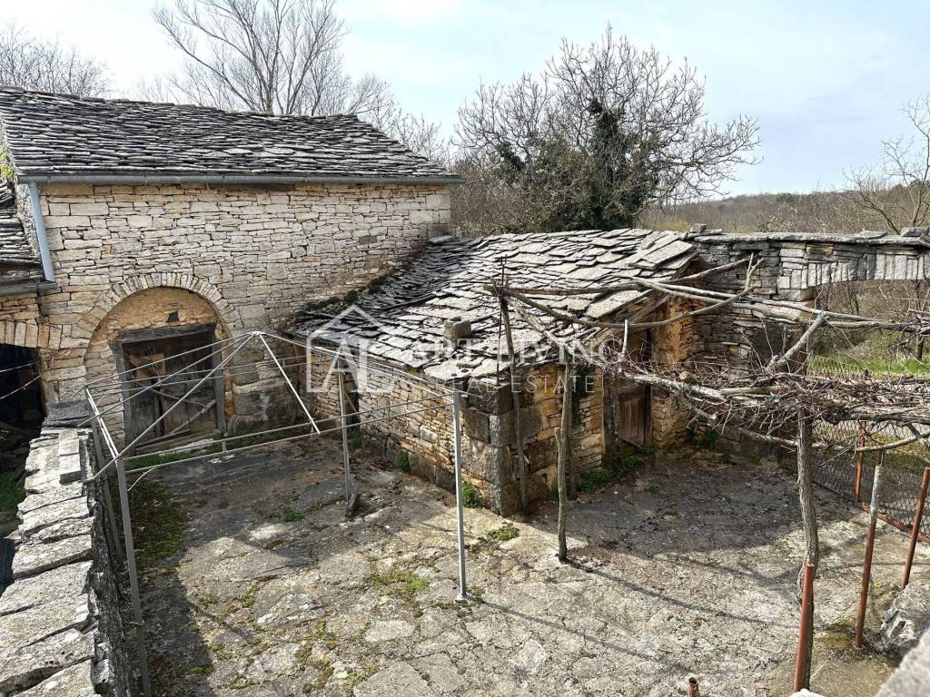 In vendita: 2 case tradizionali istriane più anziane (da ristrutturare) con 3 edifici ausiliari aggiuntivi, situate in una posizione idilliaca e tranquilla, circondate dalla splendida natura istriana.