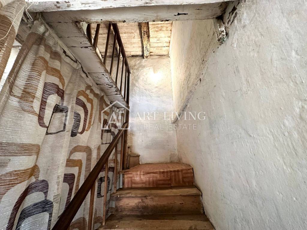 La prima casa comprende piano terra + 2 piani superiori, con una superficie totale di 140 m², oltre a 2 edifici ausiliari nel cortile — superficie complessiva 254 m². La parte abitativa è composta da 3 camere da letto, cucina, sala da pranzo, ingresso, corridoio, scala e ripostiglio sotto la scala.