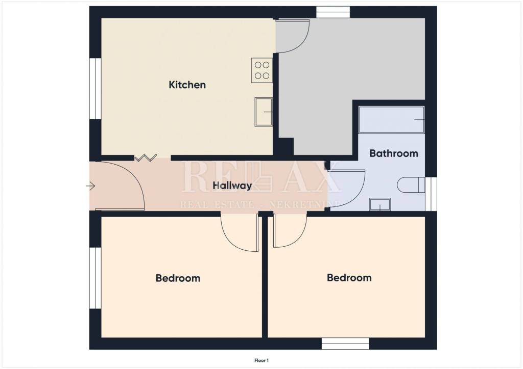La casa è composta da ingresso, cucina con zona pranzo, tre camere da letto, bagno e balcone. Al piano seminterrato si trova una cantina di 8 m², ideale come ripostiglio o spazio ausiliario secondo necessità. Davanti alla casa si estende una terrazza coperta con vista rilassante sul verde, ideale per godersi la tranquillità lontano dal caos cittadino.