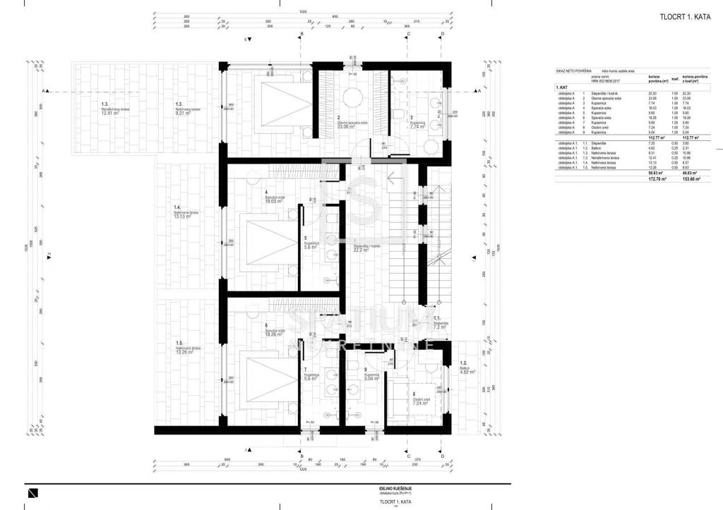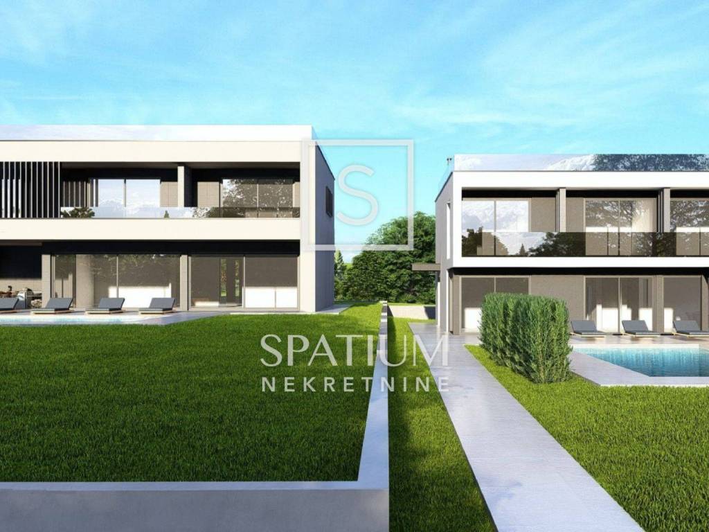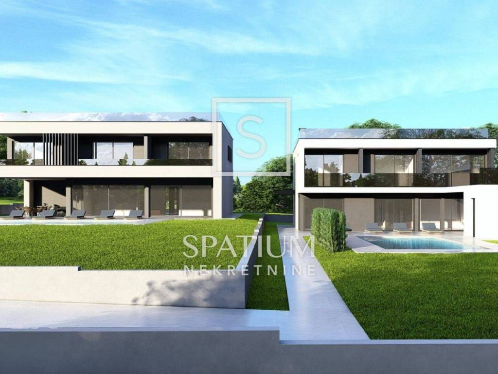 Ogni stanza della casa si distingue per materiali di alta qualità, come scale in cemento rivestite in pietra di Kanfanar, ceramiche interne provenienti da cataloghi prestigiosi e sofisticati impianti interni. Il riscaldamento è garantito da una pompa di calore Mitsubishi ad alta efficienza con riscaldamento a pavimento, mentre il raffreddamento avviene tramite fan coil o impianti di climatizzazione speciali integrati nei soffitti sospesi, garantendo comfort durante tutto l'anno.