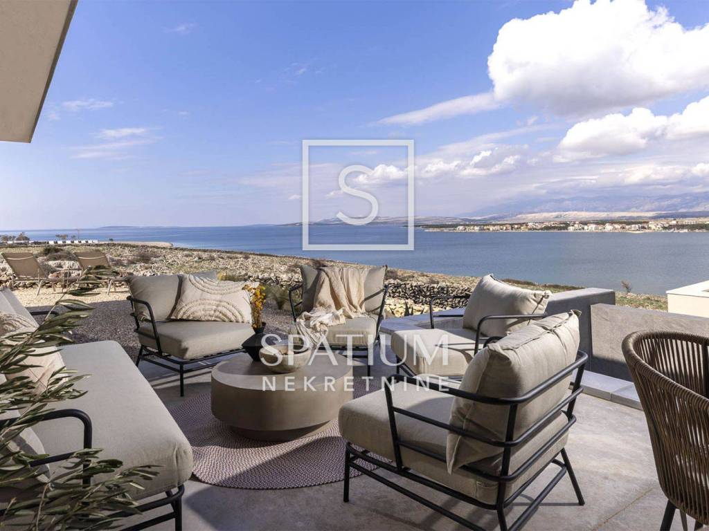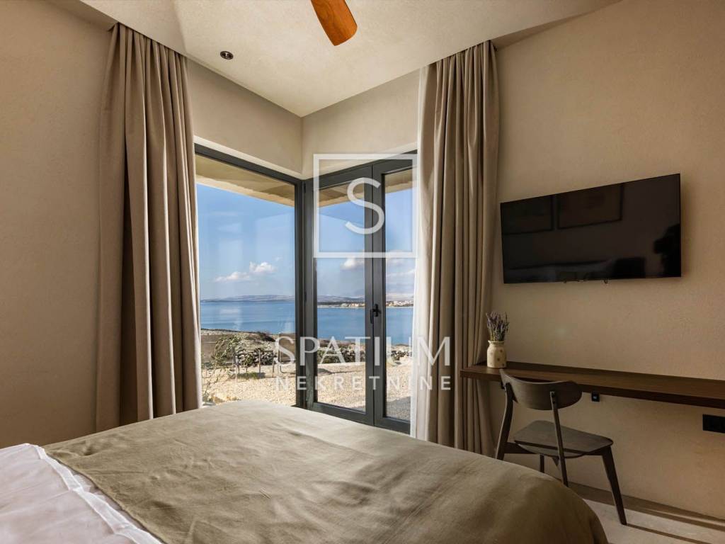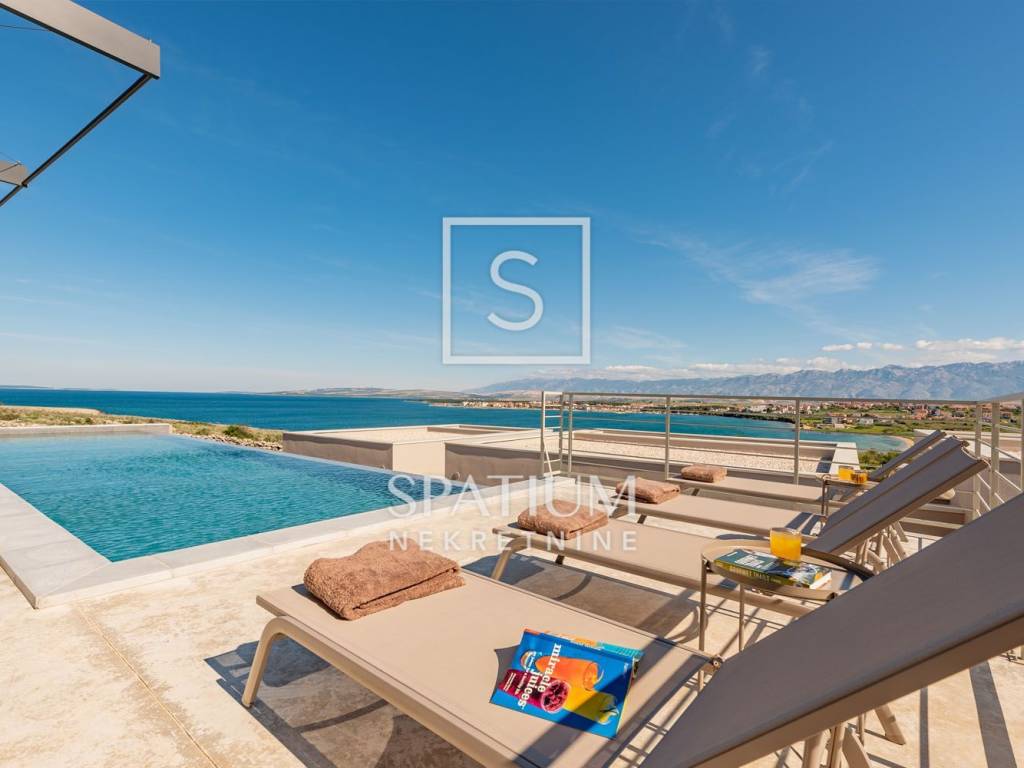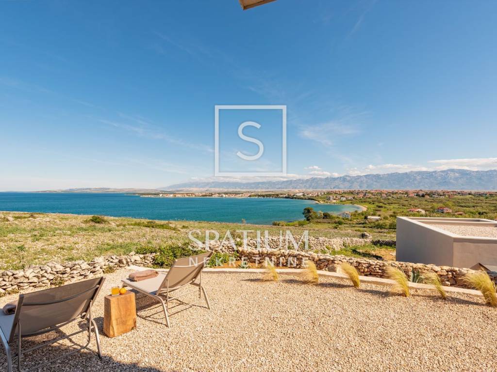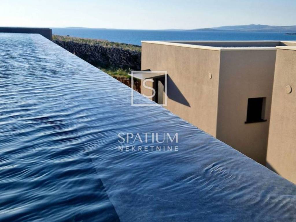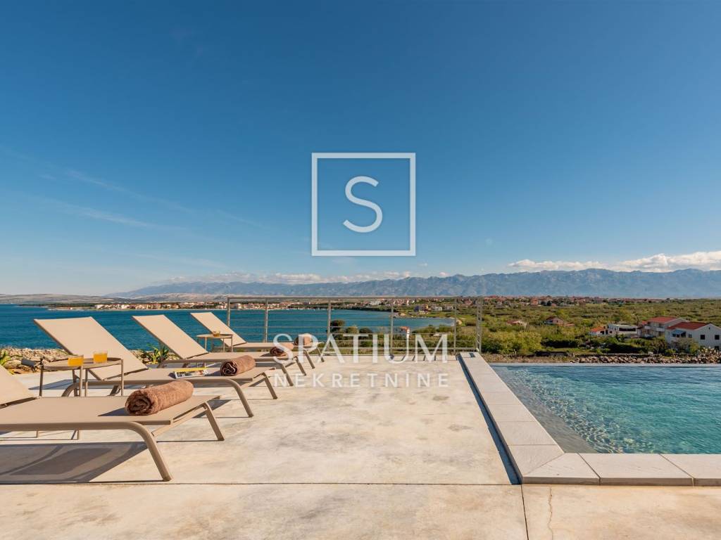 PAG, abbiamo ricevuto un'offerta per una villa di nuova costruzione a un piano con una superficie di 341 m2 su un terreno con una superficie totale di 1081 m2. È composto da un soggiorno open space, sala da pranzo e cucina, un bagno, una sala giochi, un ripostiglio e quattro camere da letto con bagno privato e cabina doccia. Il giardino dispone di una zona relax, di una zona solarium e di una piscina a sfioro riscaldata di 70 m² con vista sulla baia e sulle montagne. Nel cortile si trovano due posti auto scoperti dotati di stazione di ricarica per veicoli elettrici (Wallbox) e un giardino piantumato con piante mediterranee in prossimità del mare. Nella costruzione sono stati utilizzati materiali e arredi di qualità, quali: sanitari Galassia, miscelatori Pan Zuchetti, piastrelle in ceramica, serramenti in alluminio - vetro rinforzato doppio strato - argon, porte interne senza telaio Pivato, illuminazione Foscarini - Aplomb nella sala da pranzo, elettrodomestici da cucina Bosch, cucina Veneta Cucine. Il riscaldamento e il raffreddamento sono garantiti da una pompa di calore, dal riscaldamento elettrico a pavimento, da unità di aria condizionata e da ventilatori a soffitto Faro in ogni camera da letto e soggiorno, mentre la piscina esterna è riscaldata da una pompa di calore separata. Grazie alla sua microposizione e al buon collegamento con la terraferma tramite ponte, che la rende facilmente accessibile, rappresenta un'opportunità ideale per una moderna vita familiare in un ambiente naturale e per dedicarsi ad attività turistiche.