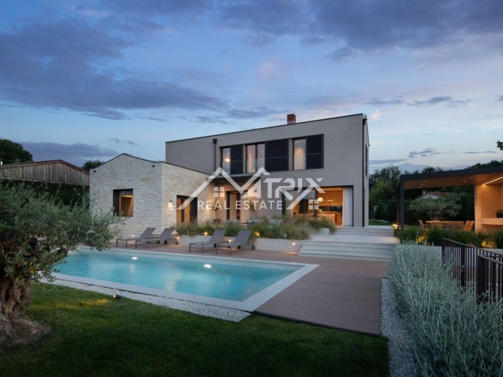 In a small and quiet place, 15 km from the center of Poreč and only 10 km from the beautiful beaches of Vrsar, a luxuriously equipped villa with a swimming pool is for sale that guarantees a unique experience. Located on the very edge of the construction zone, the villa offers 180m2 of interior living space on a spacious plot of almost 1000 m2.