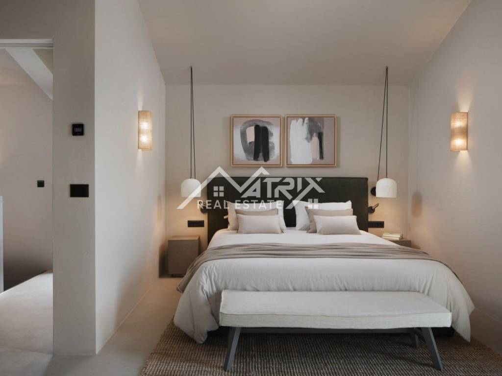 The fenced garden is rich in centuries-old olive trees, indigenous flowers and a lawn with irrigation. There is also a 40 m2 swimming pool with a sunbathing area, and a fireplace with a covered dining area and a summer kitchen. The imposing metal gate that frames the entire garden stands out. Parking for at least two vehicles is equipped with a charger for electric vehicles.