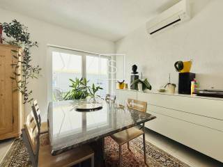 Al piano terra si trovano due camere da letto, di cui una attualmente adibita a spaziosa cabina armadio, un bagno con WC, un ulteriore WC per ospiti, un corridoio, una cucina con sala da pranzo e ripostiglio, e un ampio soggiorno con accesso alla terrazza con vista mare.