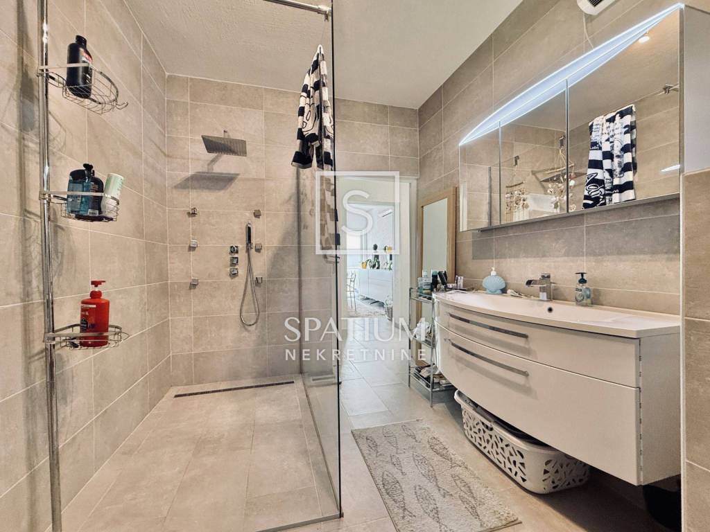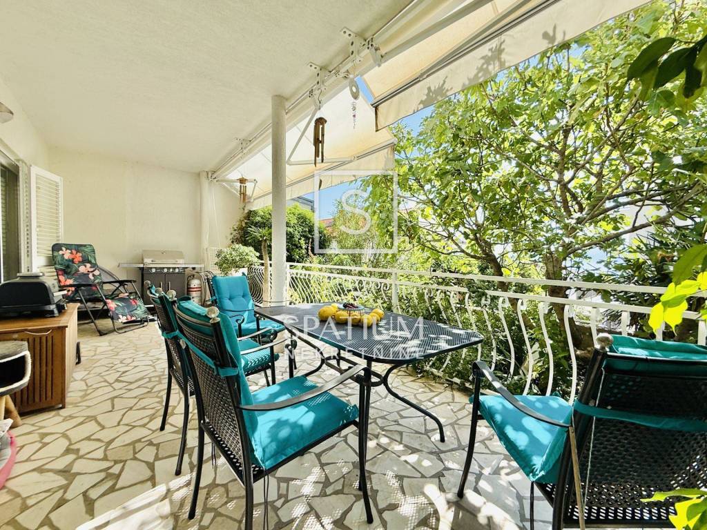 Il terreno è curato e recintato, e oltre a diverse terrazze con vista sul mare, offre un garage di 48 m² e quattro posti auto coperti. Complessivamente, si tratta di un immobile spazioso e ristrutturato con cura, che offre condizioni ideali per una vita familiare ma anche un eccellente potenziale come investimento per affitti turistici.