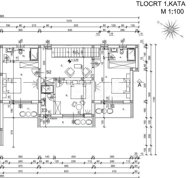 Una scala interna conduce al primo piano, dove si trova un disimpegno e tre spaziose camere da letto, ognuna con il proprio bagno e balcone che offre una splendida vista sul golfo del Quarnero. La villa sarà completamente arredata.