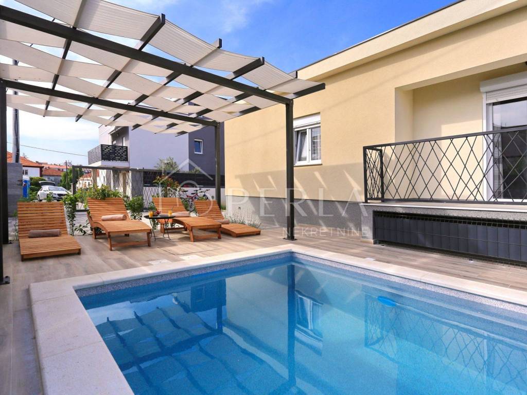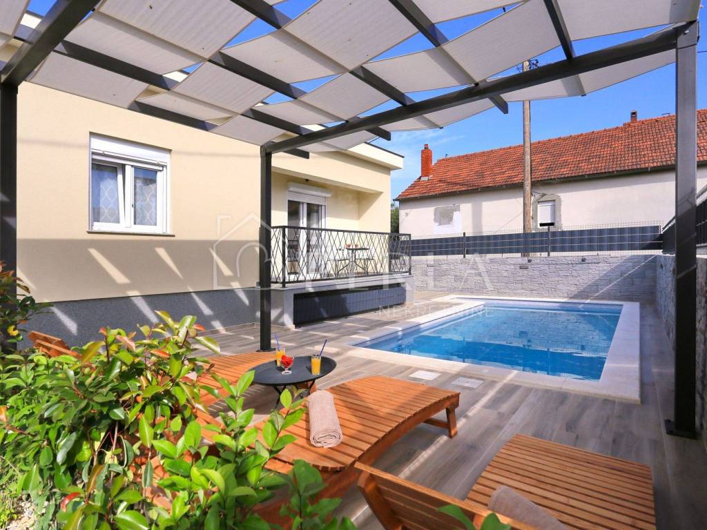 In the beautiful and quiet Arbanasi neighborhood in Zadar, this charming, modernly decorated single-storey house with a private swimming pool and sundeck is located - ideal for family life or tourist rental.