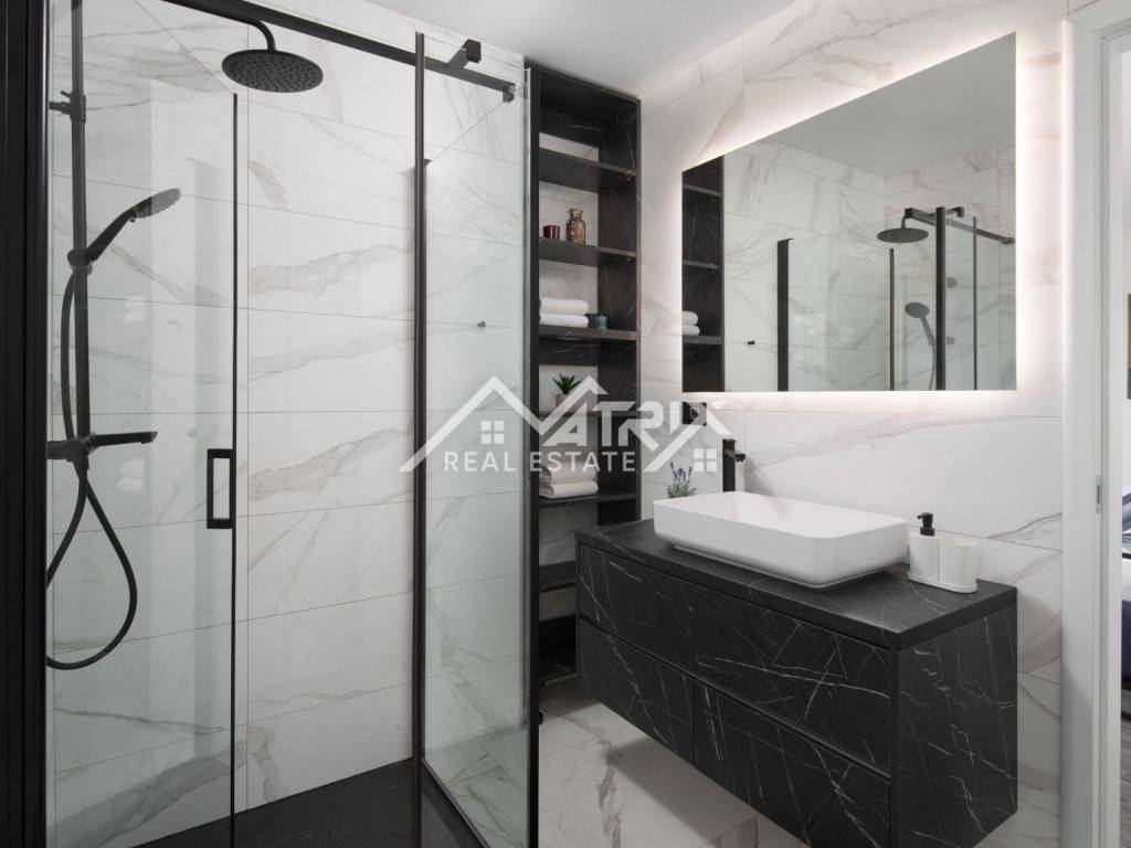 The house is sold fully furnished and equipped as shown in the pictures. The complete furniture is made to measure, and attention was paid to every detail in order to make the house at the highest level. The entire house has underfloor heating via a heat pump, and each room has an air conditioner. Solar energy provides hot water in the house.