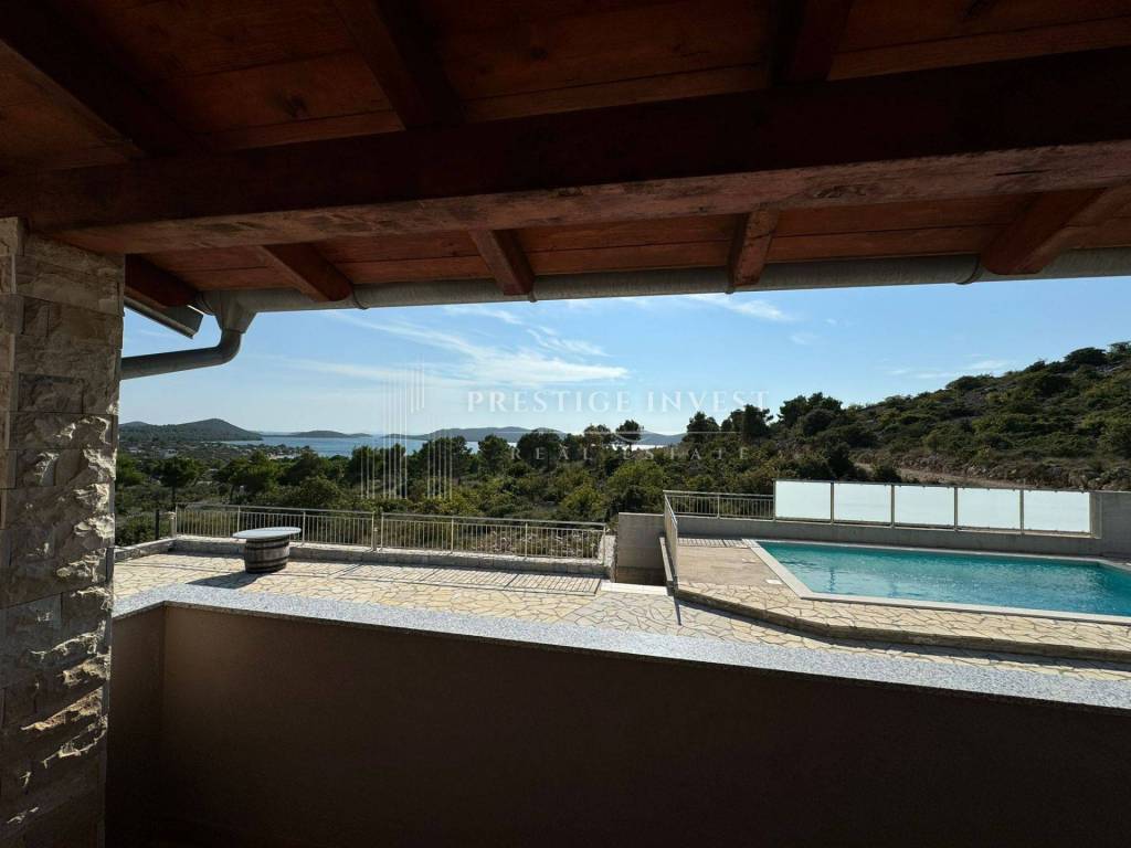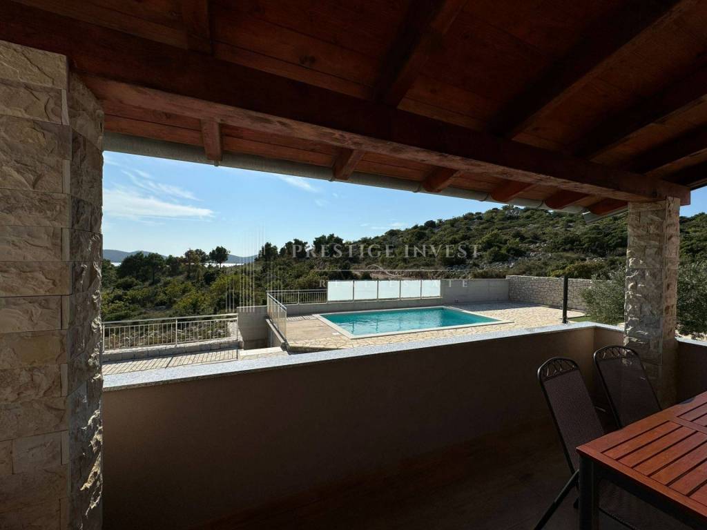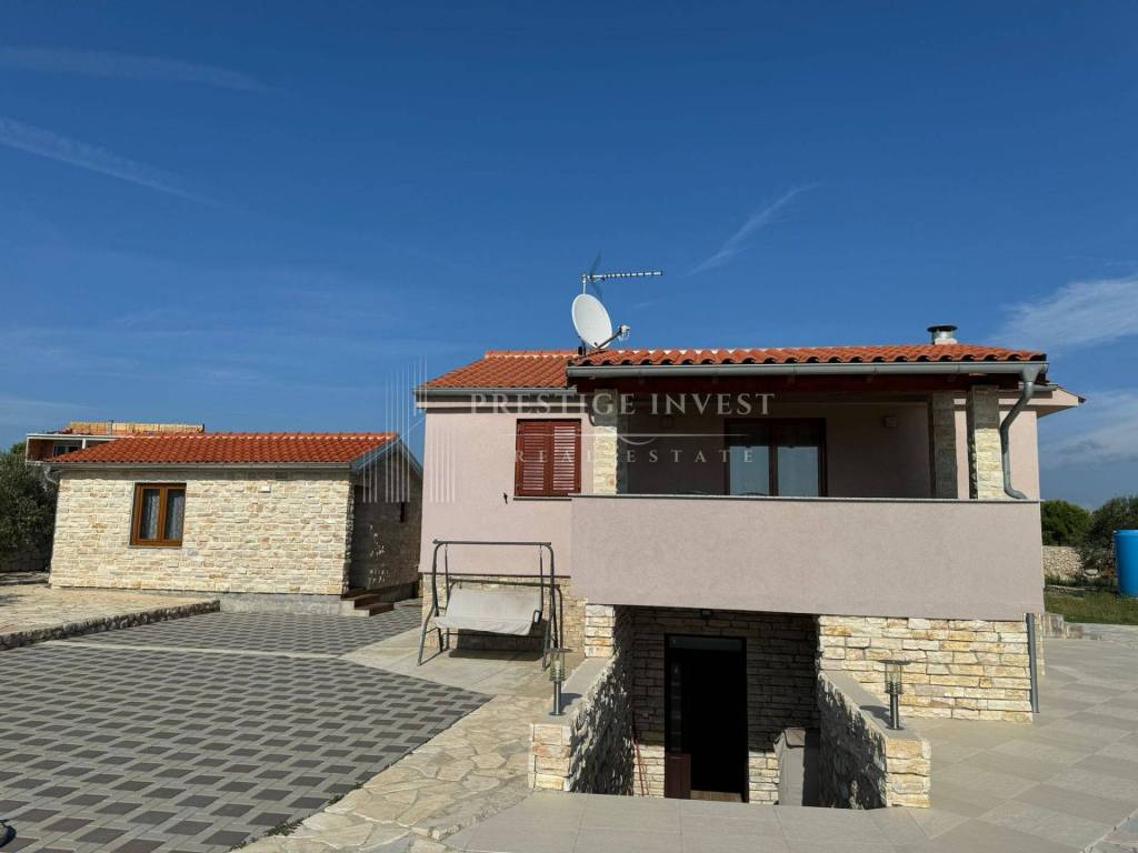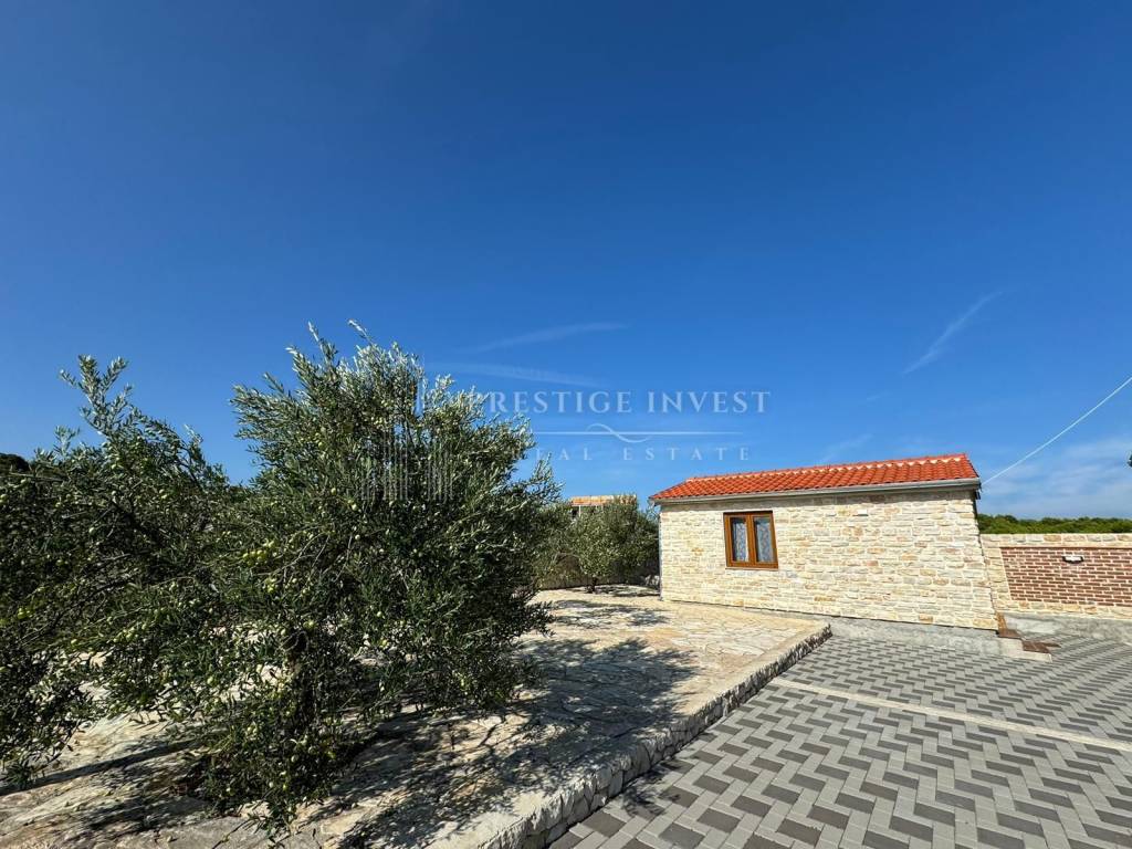 Pakoštane, Drage - we offer a property on a large plot of 1633 m2 with a sea view and surrounded by nature with a stone house decorated in a rustic Mediterranean style.