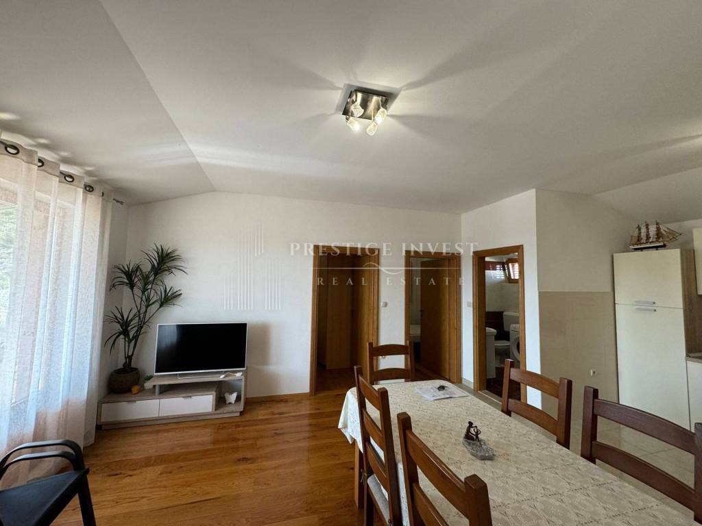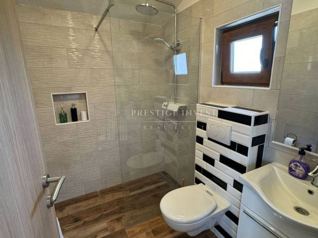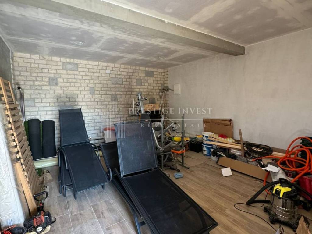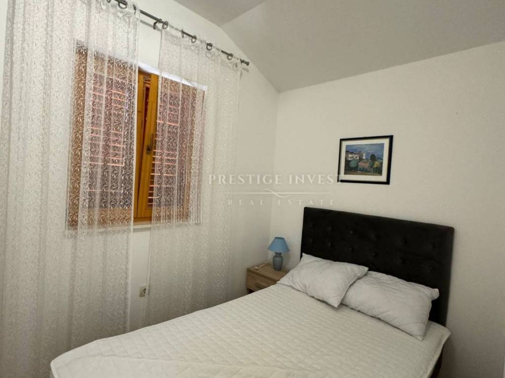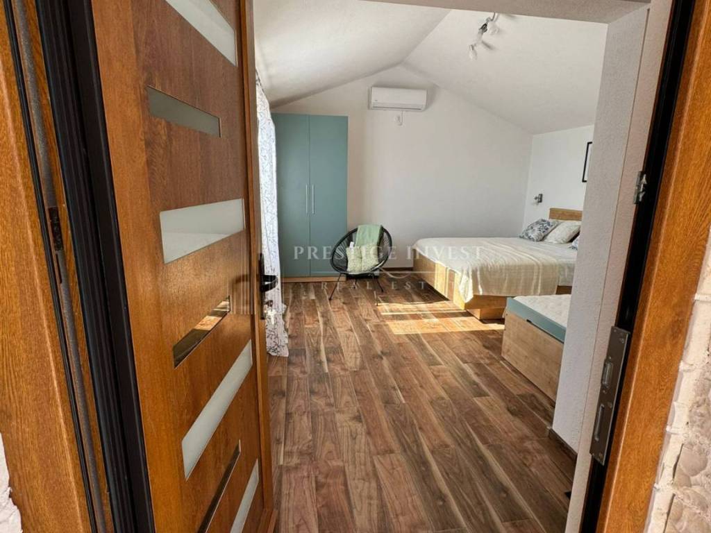 On the property there is a stone house consisting of a basement (basement that can be converted into a gym or living space), and an apartment on the upper ground floor, which contains a spacious dining room with a kitchen, two bedrooms with a bathroom, and a terrace with a view of the sea. There is also an auxiliary building on the property, which is arranged as a bedroom with a bathroom.