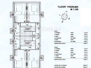Secondo il progetto principale, la casa è composta da cantina, piano terra e primo piano, con una superficie totale di 356 m² e due unità abitative di circa 178 m² ciascuna. Ogni unità abitativa dispone di una cantina di 54 m² composta da due camere da letto e due bagni. I piani terra di circa 60 m² comprendono soggiorno open space con cucina e sala da pranzo, corridoio e WC con lavanderia. Dal soggiorno si accede a terrazze coperte e giardini con piscine e solarium. I piani superiori, di circa 62 m², comprendono due camere da letto, due bagni e terrazze coperte.