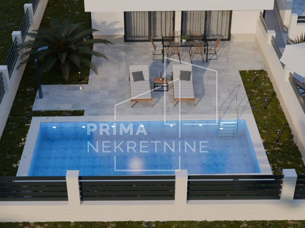 It is located in a new, smaller residential building with a total of three apartments, which ensures privacy, silence and a pleasant atmosphere for living or vacationing. The property is currently in the unfinished construction phase. It still needs to be installed with floors, interior doors and the pool completed. The price is communicated as a “turnkey”, which gives the buyer the opportunity to choose the finishing materials themselves at this stage and adjust the interior to their own taste.
