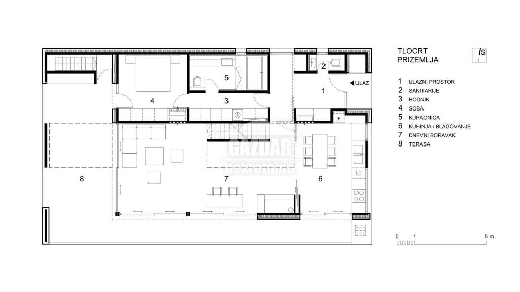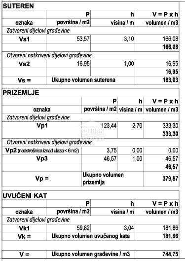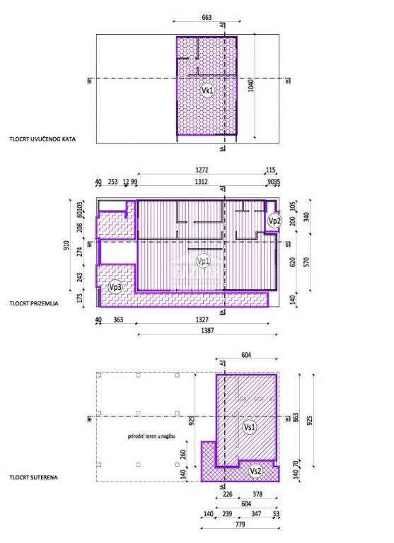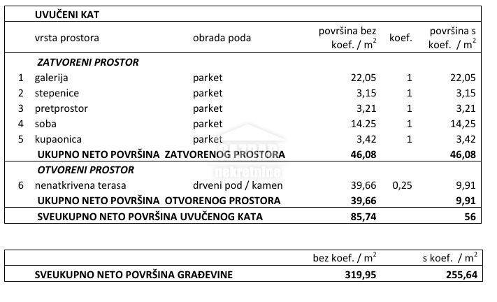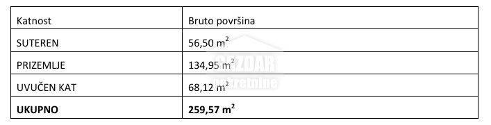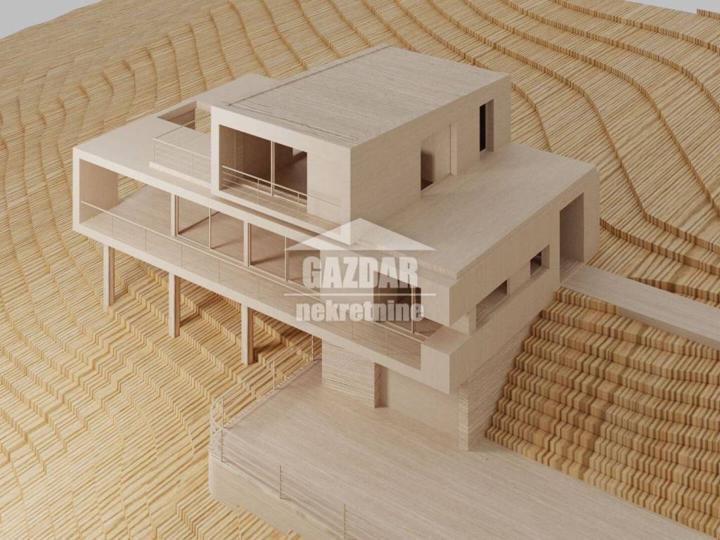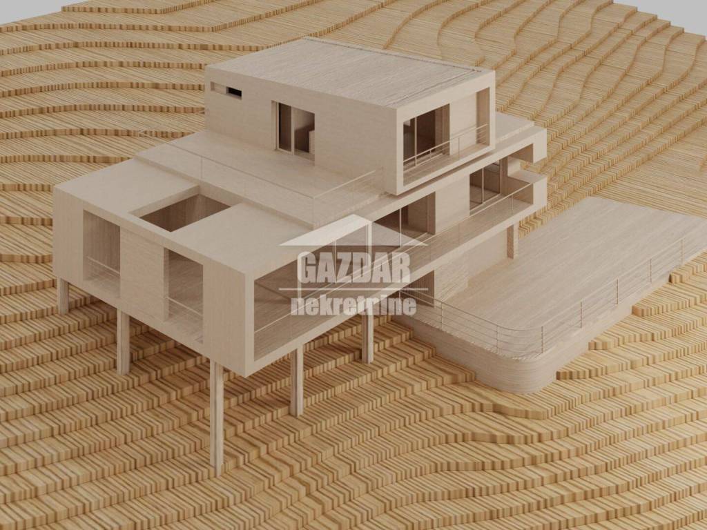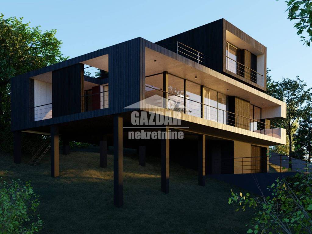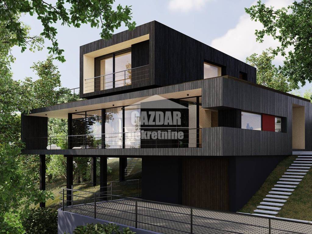 Kuća je planirana s tri nadzemne etaže maksimalno poštujući okoliš. Prva nadzemna etaža je suteren u kojem je smještena garaža i tehničke prostorije. U prizemlju kao glavnoj etaži smješten je ulazni prostor na istoku, kuhinja na jugoistoku, blagovanje, radni prostor i dnevni boravak na jugozapadu, idealno pozicionirani prema Feng Shui principima. U mirnijem dijelu prizemlja smještena je spavaća soba s kupaonicom i izlazom na terasu. Uvučeni kat povezan je prizemljem s galerijom i unutarnjim stepenicama, a na galeriji se nalazi prostor za jogu, meditaciju i opuštanje s pogledom na šumu i grad. U mirnijem dijelu kata nalazi se spavaća soba s kupaonicom. Predviđena su dva parkirališno-garažna mjesta, jedno u garaži u suterenu i drugo na građevnoj čestici na predviđenom mjestu uz kolni pristup garaži.