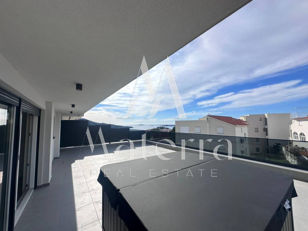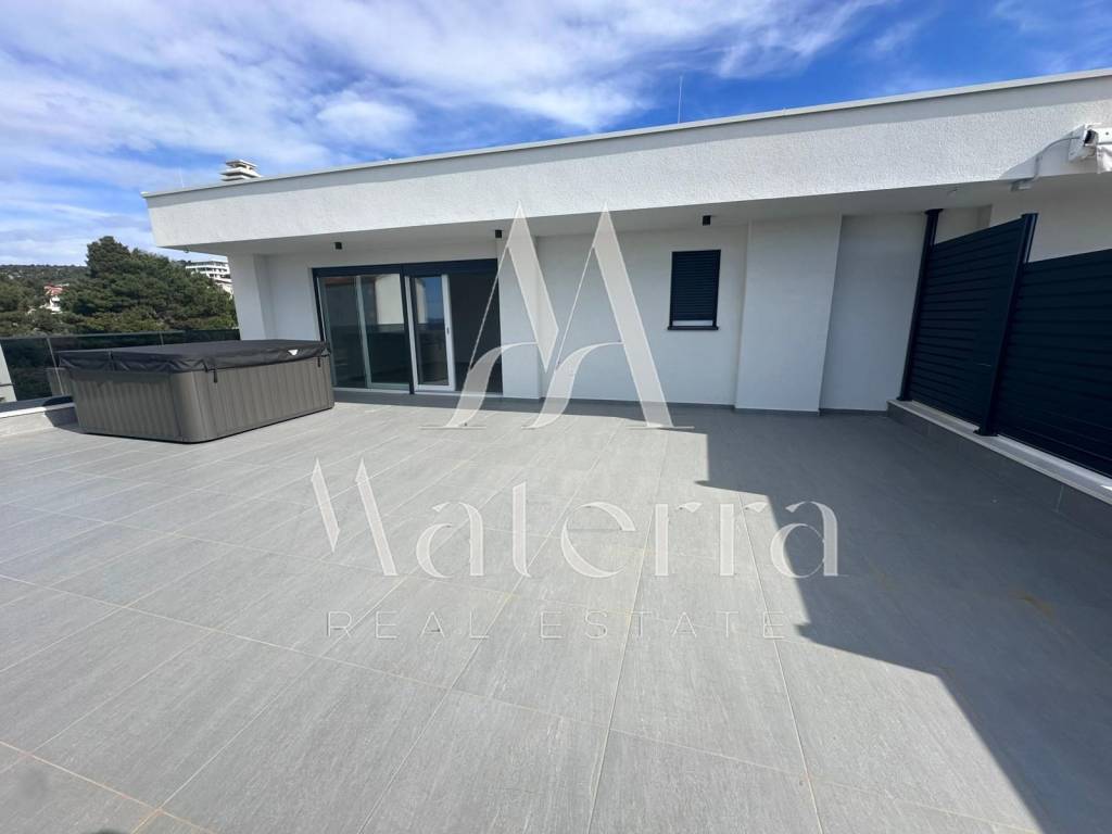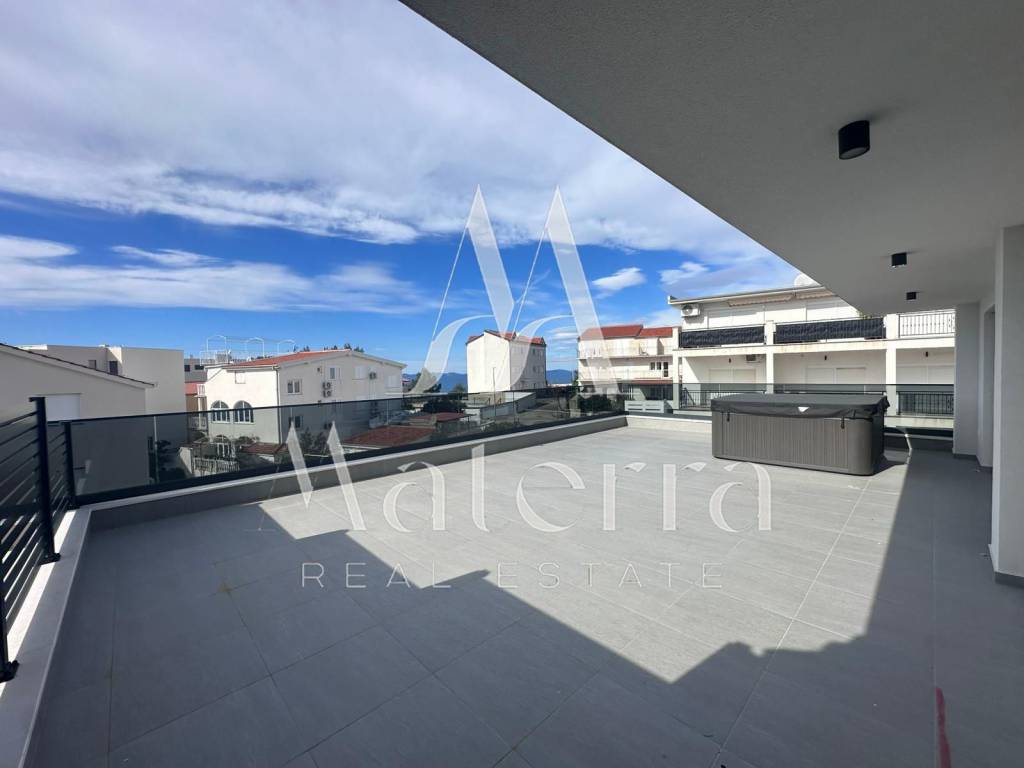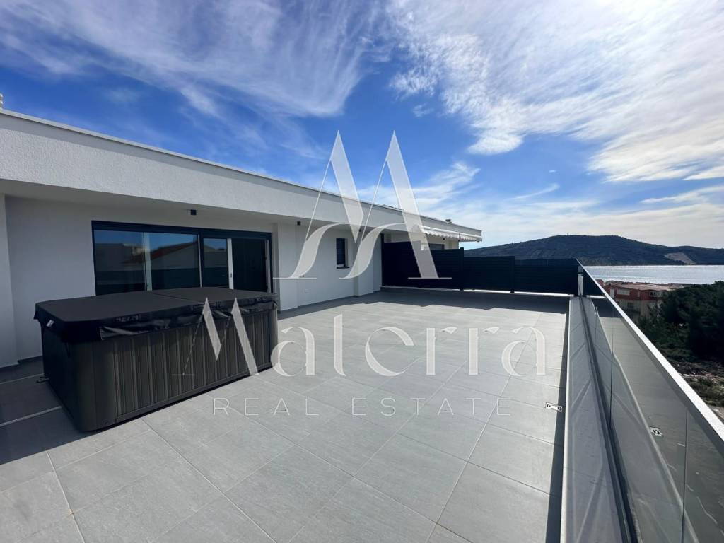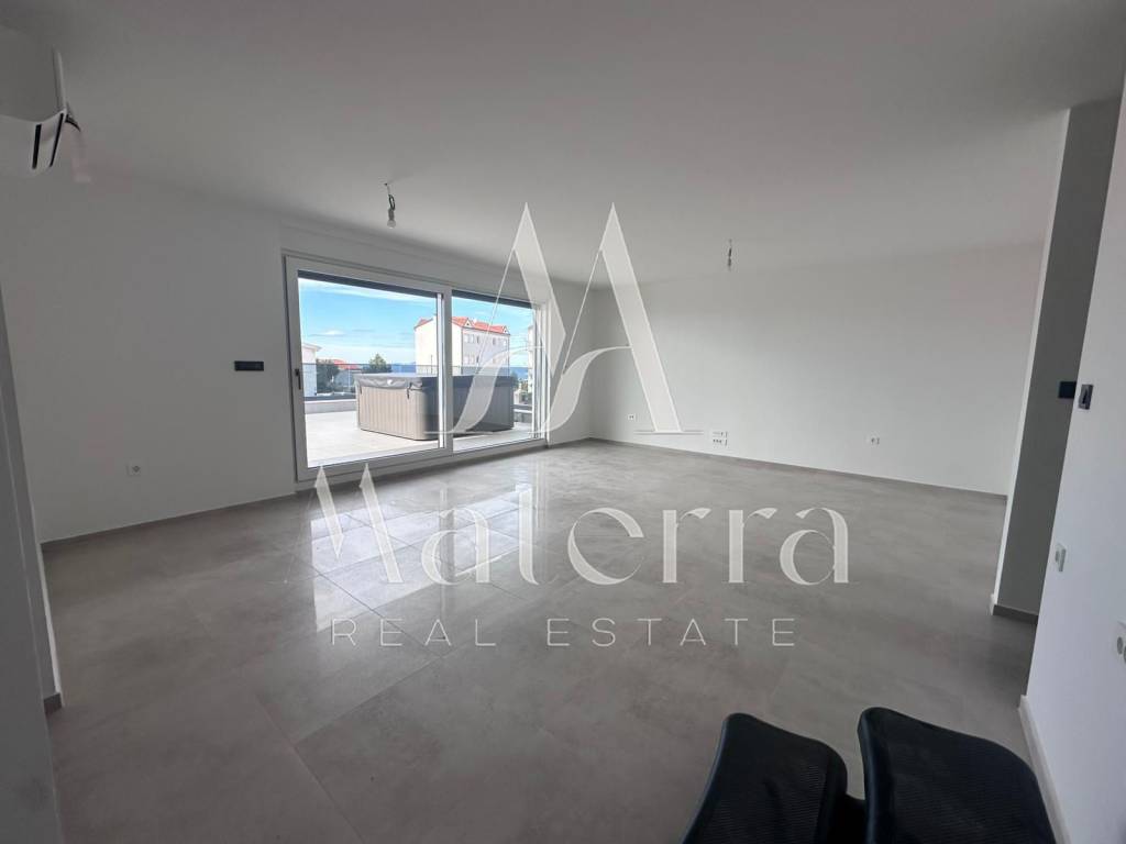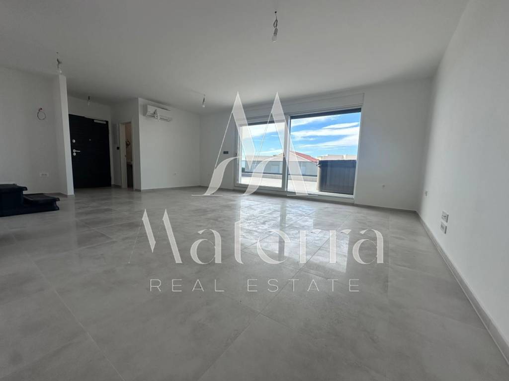 A modern and luxuriously equipped apartment (S13) is for sale, located on the third floor of a new residential building in a quiet and attractive area of Primošten. The apartment has a total area of 98.2 m² and includes two comfortable bedrooms, a luxury bathroom, an additional WC, a storage room, a loggia, a spacious living room with a kitchen, and access to a 77.91 m² terrace. One outdoor parking space per unit is included in the price.