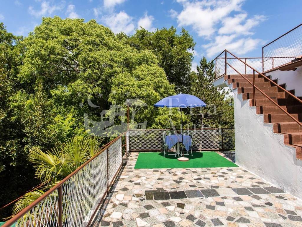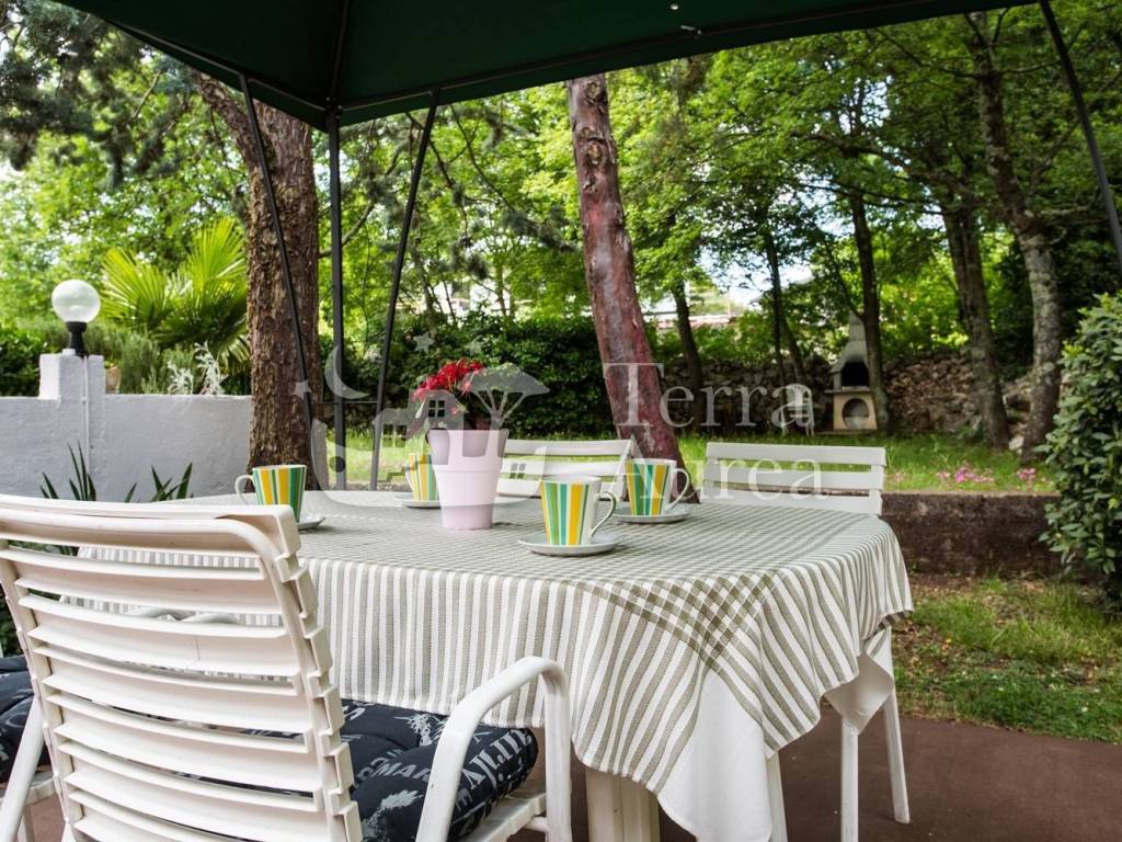 La casa si trova in una posizione idilliaca, vicino al bosco, circondata dalla natura e dal verde, e dispone di un bellissimo giardino paesaggistico. C'è una vista parziale sul mare dal primo piano.