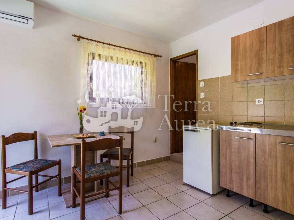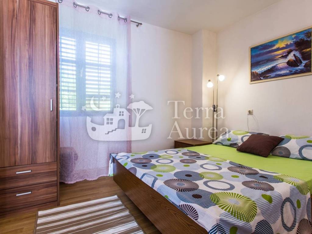 Al piano terra si trovano un monolocale con una camera da letto, soggiorno con angolo cottura e pranzo, bagno e terrazzo, ed un bilocale composto da due camere da letto, soggiorno con cucina e pranzo, bagno e terrazzo. La stessa situazione si trova al primo piano della casa, dove si trovano un monolocale e un bilocale con terrazzo.