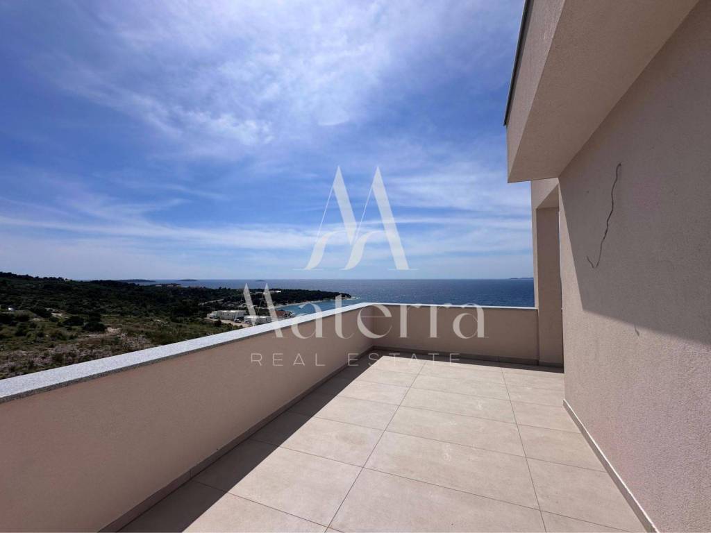 An apartment with a unique view is for sale, located on the third floor of a modern residential building in the peaceful village of Dolac, just a few minutes' drive from the picturesque town of Primošten. The building is situated on a gentle elevation, offering an unobstructed view of the Adriatic Sea. It is only 300 meters from the coastline and beautiful beaches.