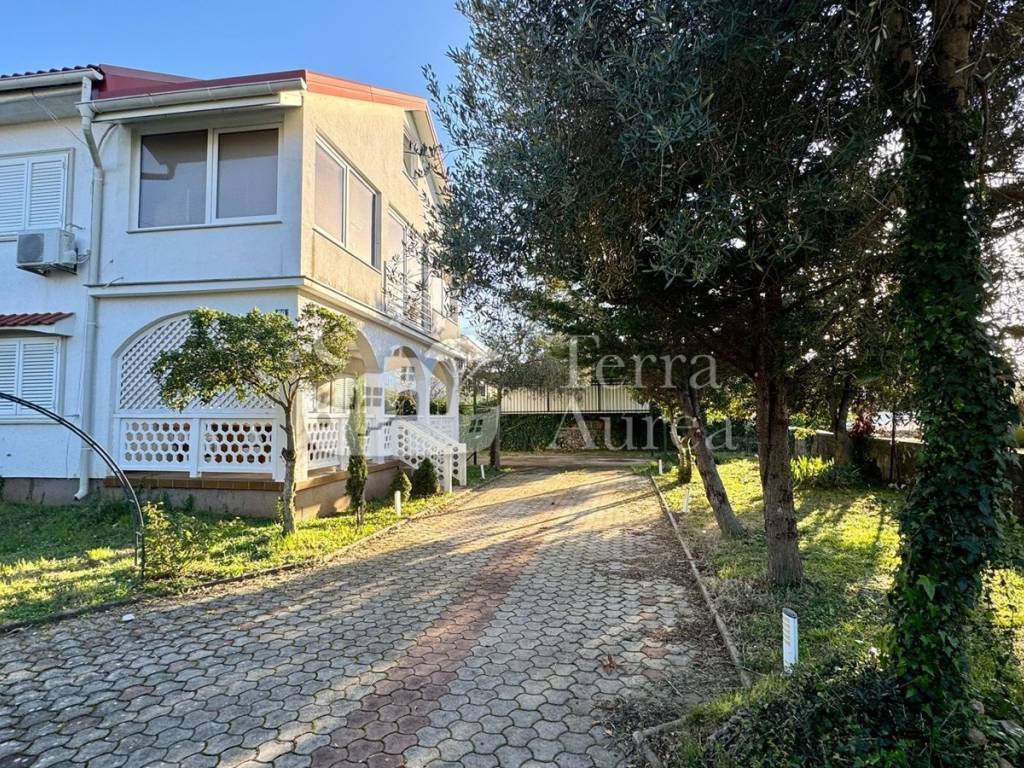Inoltre la casa si distingue per il suo ampio e ben curato giardino di 490 mq, dove si trovano tre posti auto. Circondata dai benefici della natura, questa proprietà offre completa tranquillità e comfort garantito, è ideale per una vita rilassante o come investimento a fini turistici.