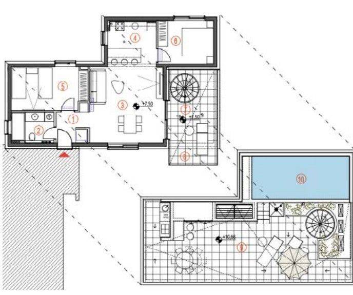 The project includes two luxury villas and ten exclusive apartments, each with sea view and its own outdoor space. The complex is designed to combine modern design, privacy, and Mediterranean ambiance.