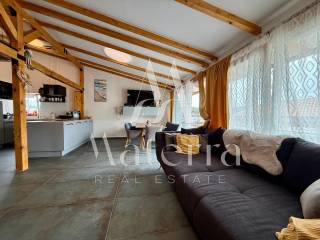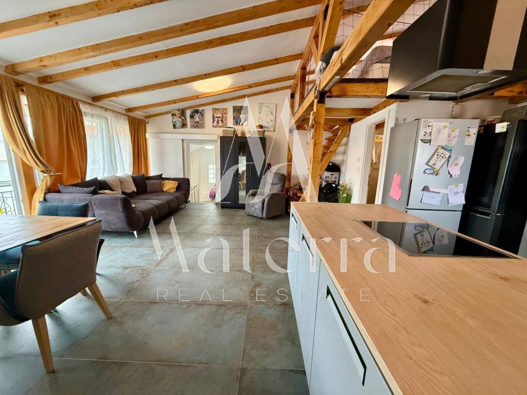 The apartment is situated in the attic of a building that has a valid usage permit and is legally divided, ensuring secure ownership and a smooth transfer. The property also includes an additional rooftop storage room of 27.77 m².