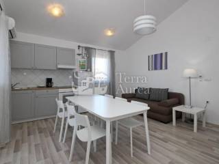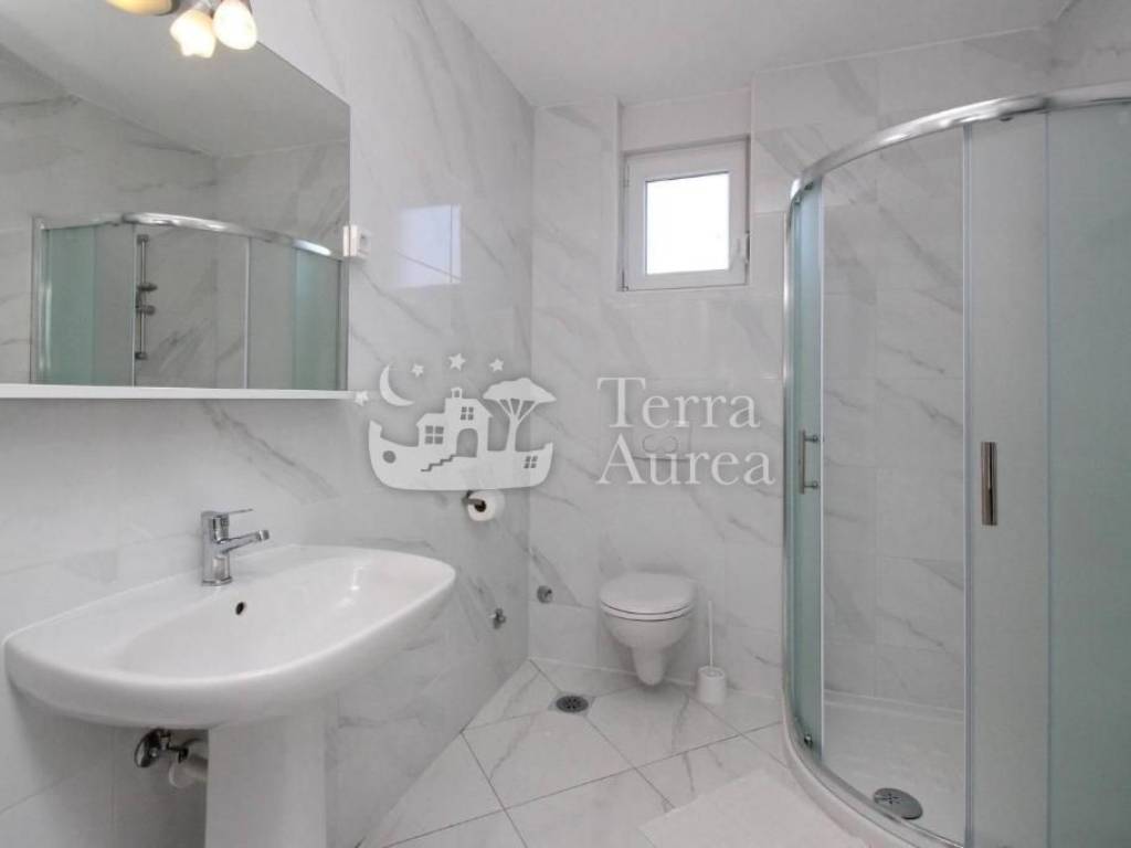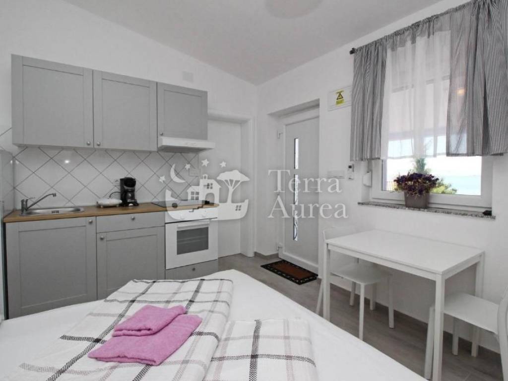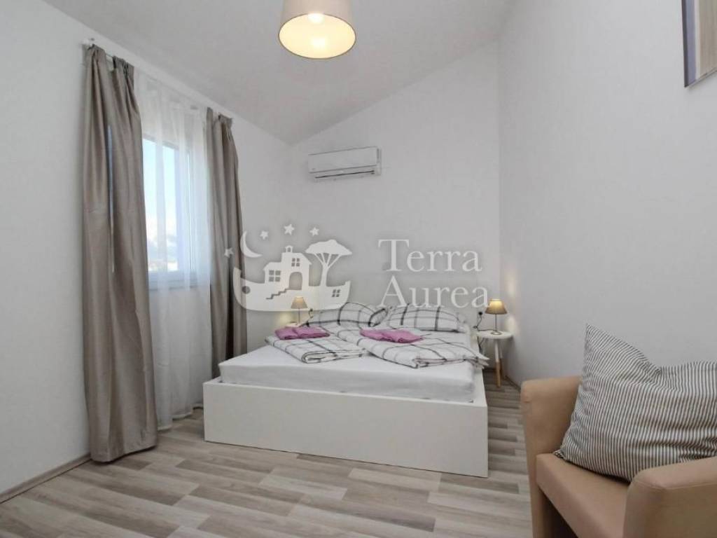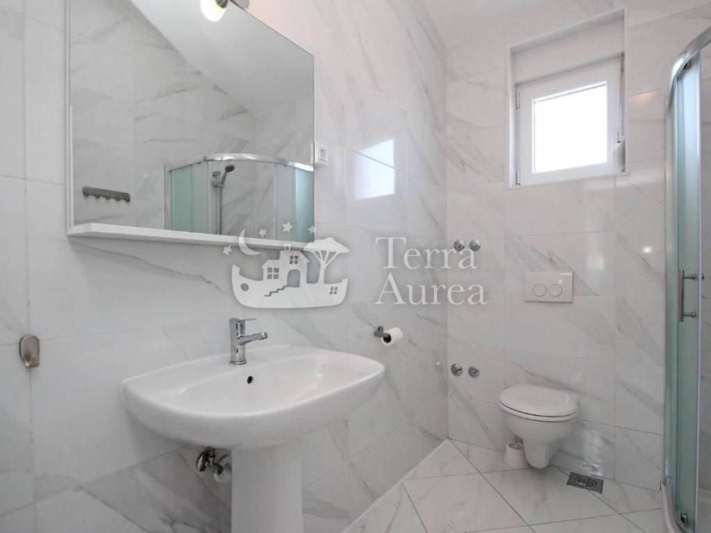 Al piano seminterrato si trova un appartamento completamente arredato, collegato internamente all'appartamento al piano terra, formando così un ampio e confortevole spazio abitativo di quasi 100 m². Se necessario, queste due unità possono anche fungere da appartamenti bilocali separati. Al piano terra si trova un altro appartamento bilocale indipendente, mentre al primo piano si trova un elegante appartamento con due camere da letto con un'ampia terrazza e una vista aperta sul mare, che si estende dal piano terra grazie alla posizione elevata della casa stessa.