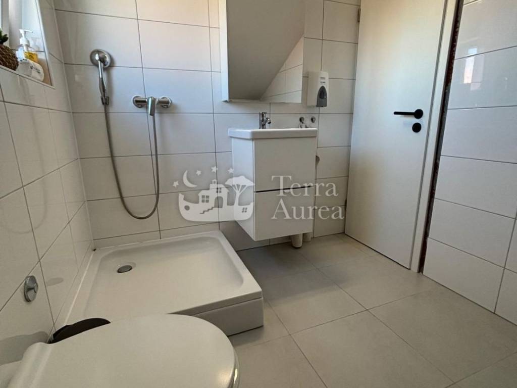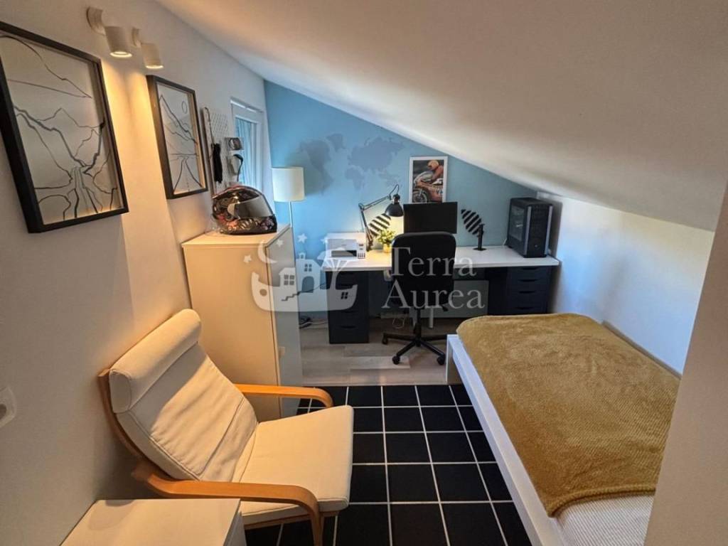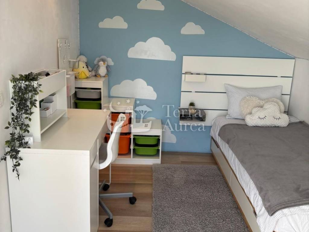 La mansarda offre ulteriore privacy e tranquillità con due comode camerette per bambini e un secondo bagno, mentre al piano superiore si trova un'ampia terrazza sul tetto, ideale per rilassarsi, prendere il sole o trascorrere serate con la famiglia e gli amici.