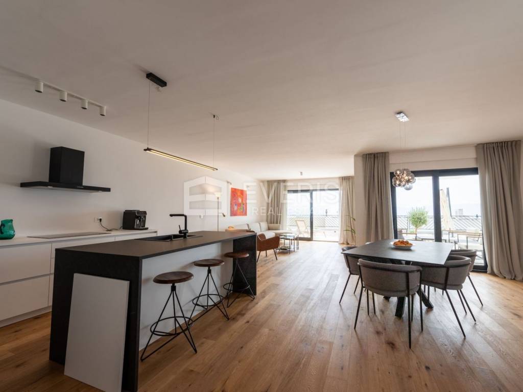 The flat is well equipped; ALU carpentry with aluminum blinds, Vaillant gas underfloor heating, four BERGEN brand air conditioners, security doors and video surveillance.