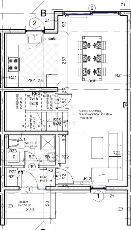 Open-plan living room, dining area and kitchen (39.56 m²)