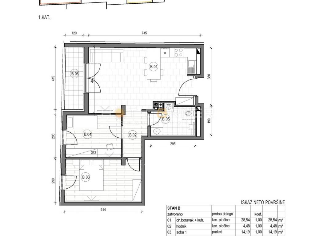 In vendita c'è un nuovo progetto residenziale con soli 12 appartamenti nel cuore di Pola. Il progetto è composto da diversi appartamenti di diverse dimensioni situati al primo, secondo e terzo piano. L'edificio è dotato di un ascensore che collega dal piano terra all'ultimo piano. Posti auto coperti e ripostigli si trovano al piano terra.