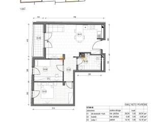 L'appartamento menzionato è situato al primo piano, con una superficie di 65m2, e si compone di: un ingresso, un bagno con un WC, due camere da letto, una cucina e un soggiorno con accesso alla loggia. L'appartamento include anche un posto auto coperto e un ripostiglio associato di circa 4m2. Il ripostiglio e il posto auto comportano un costo aggiuntivo di 15.000€.