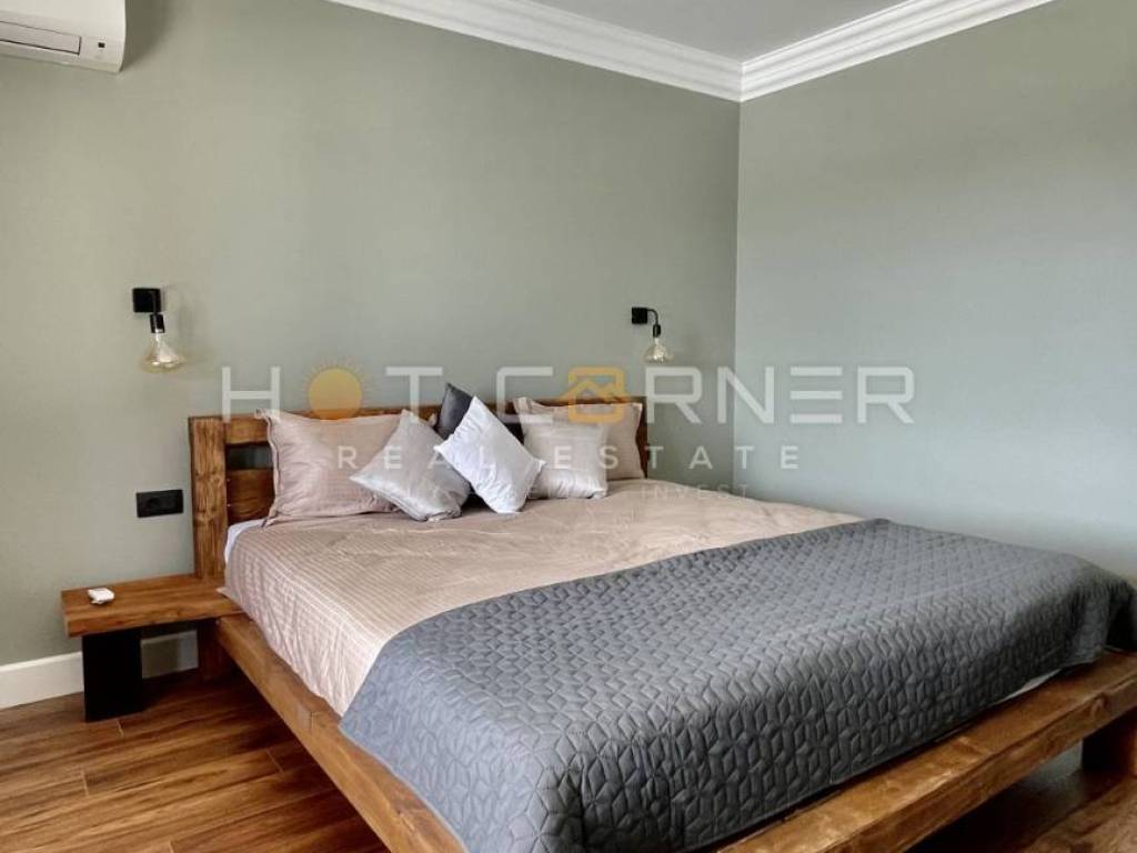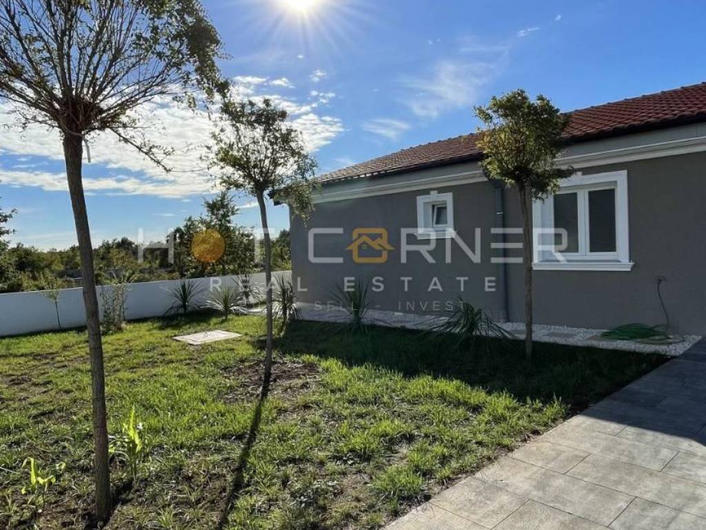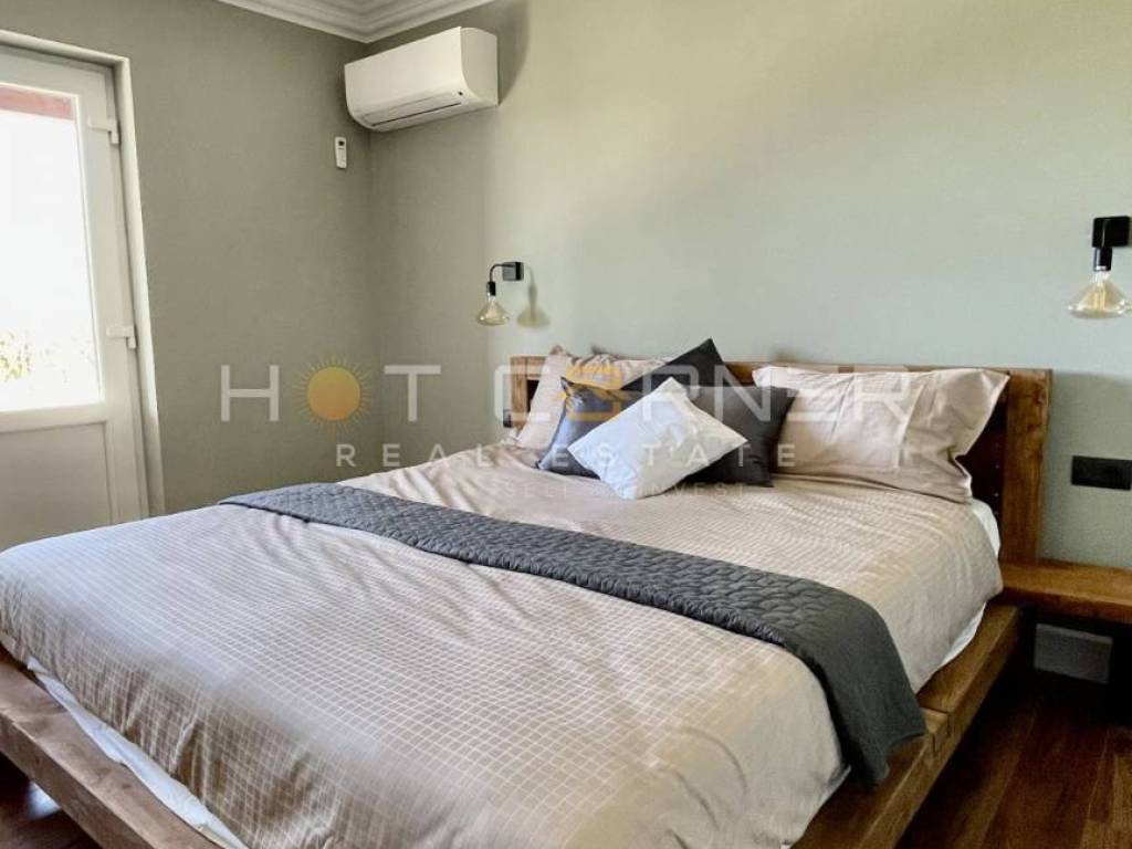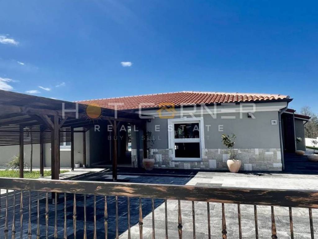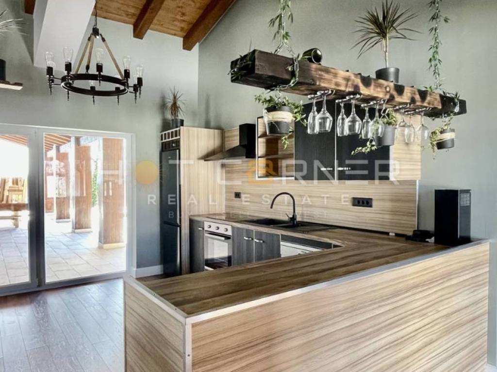 Su un terreno di 1572m2, una villa al piano terra di 250m2, costruzione di altissima qualità (mattoni + cemento, isolamento di qualità), con dettagli unici fatti a mano in legno.