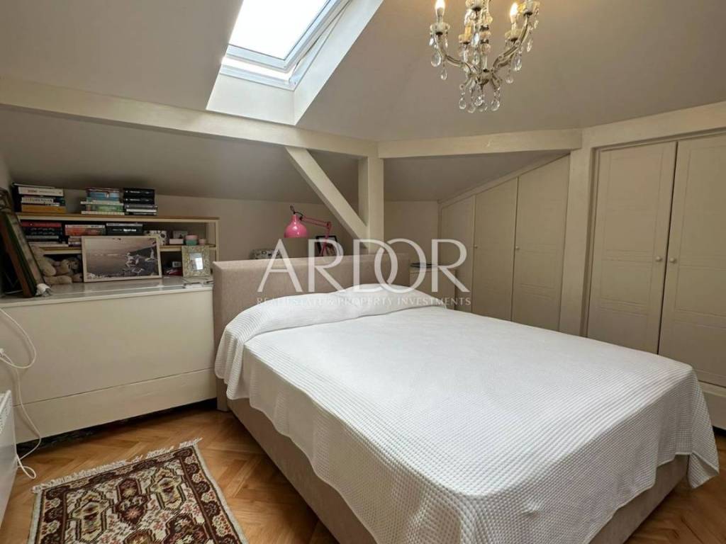 In vendita spazioso appartamento di 139 m² situato nel pieno centro di Opatija. Si compone di tre camere da letto, soggiorno, cucina e due bagni, ed è incluso anche un ripostiglio al piano terra. L'appartamento è stato completamente ristrutturato e rinnovato nel 2017 e non necessita di ulteriori lavori. È dotato di climatizzatori inverter e radiatori elettrici. L'edificio dispone di videocitofono e la maggior parte dei mobili può rimanere previo accordo.