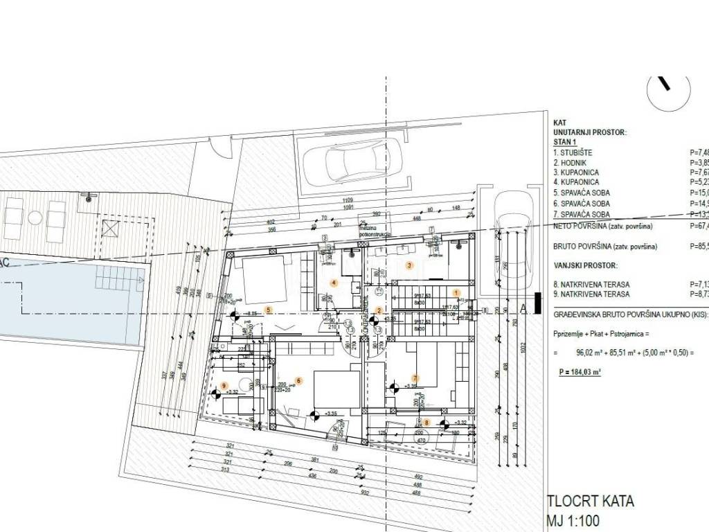 * Parkirna mjesta po 1 stambenoj jedinici min.= 1,5 / 1 Stambena jedinica.