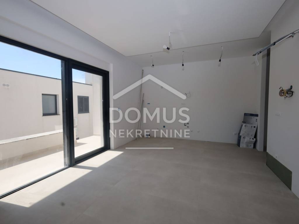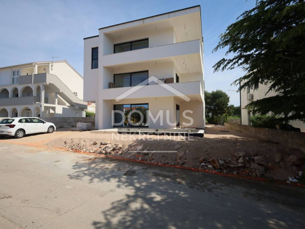 Vodice, in a quiet location, a comfortable one-bedroom apartment with a total usable area of 58.17 m2. The apartment is located on the 1st floor of a smaller apartment building (4 apartments in total). It consists of a hallway, kitchen, dining room and living room with access to the terrace, one bedroom, a bathroom. The apartment is facing southwest. The entire apartment is equipped with underfloor heating, ensuring a high level of comfort throughout the year. The apartment also includes a parking space in front of the building. Distance from the Hangar beach 750 m and from the center 1,200 m. The expected move-in date is spring 2026.