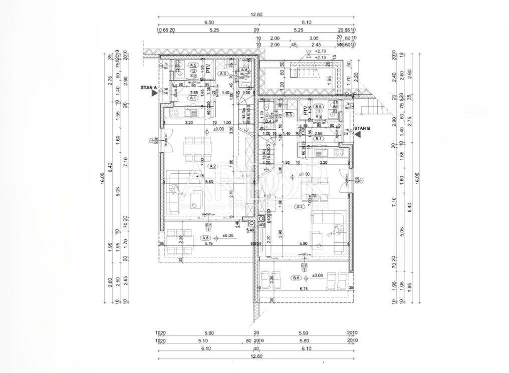 L'edificio dispone di due appartamenti duplex e un attico, e ogni unità abitativa ha il proprio ingresso indipendente, garantendo la massima discrezione e comfort durante il soggiorno.