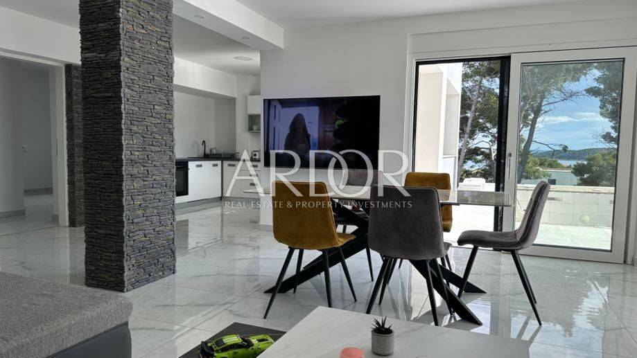 In una zona tranquilla e verde di Banjol, sull'isola di Rab (Arbe), a soli 250 metri dal mare e dalla spiaggia, è in vendita un lussuoso appartamento al piano terra di 135 m², situato in una moderna villa urbana alla fine di una strada senza uscita e completamente silenziosa. La posizione su una dolce collina offre una vista panoramica aperta e ininterrotta sul mare, sulle isole di Pago, Lussino, Veglia e Dolin, nonché sul centro storico di Rab, garantendo al contempo una distanza ideale dal trambusto e da tutte le fonti di rumore. La villa è progettata per garantire la massima privacy, un aspetto raffinato e un elevato livello di comfort.