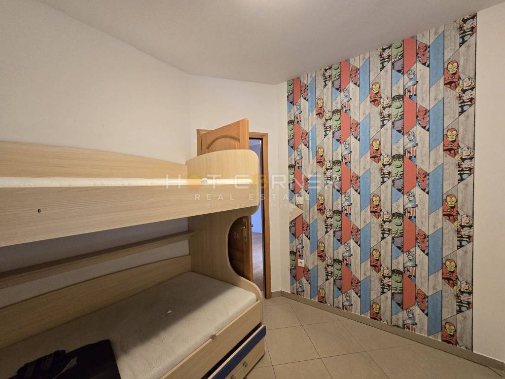 L'appartamento misura 60 mq ed è composto da ingresso, 2 camere da letto, un bagno,