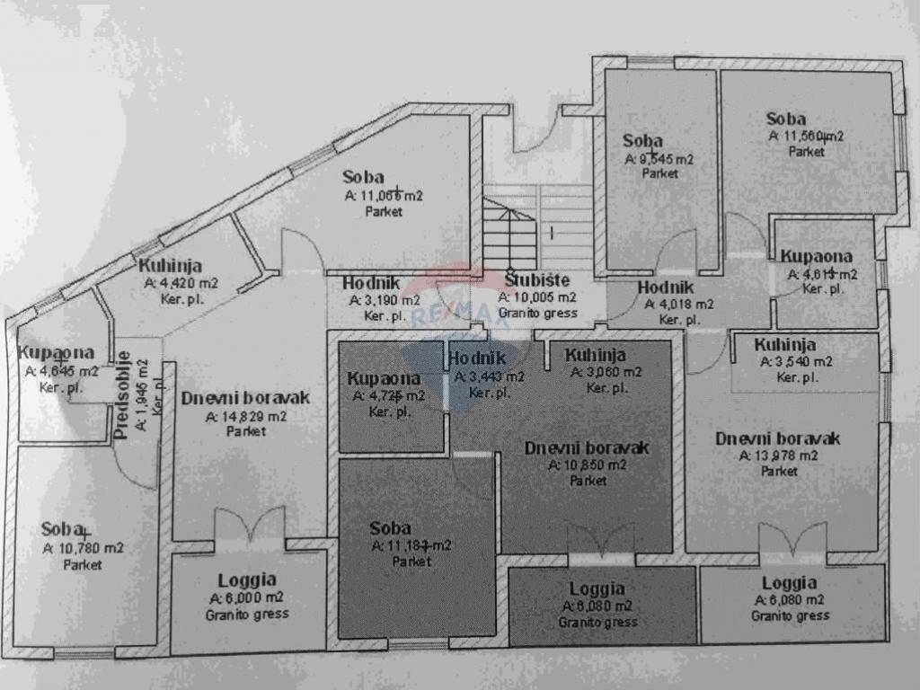 Zgrada je netto površine 435 m2, sa 3 stana površine 52 m2, 3 stana površine 38 m2 i 3 stana površine 55 m2.
