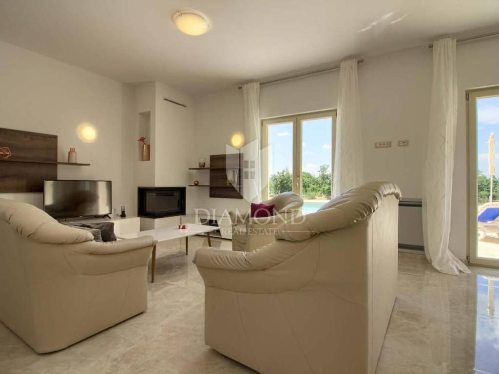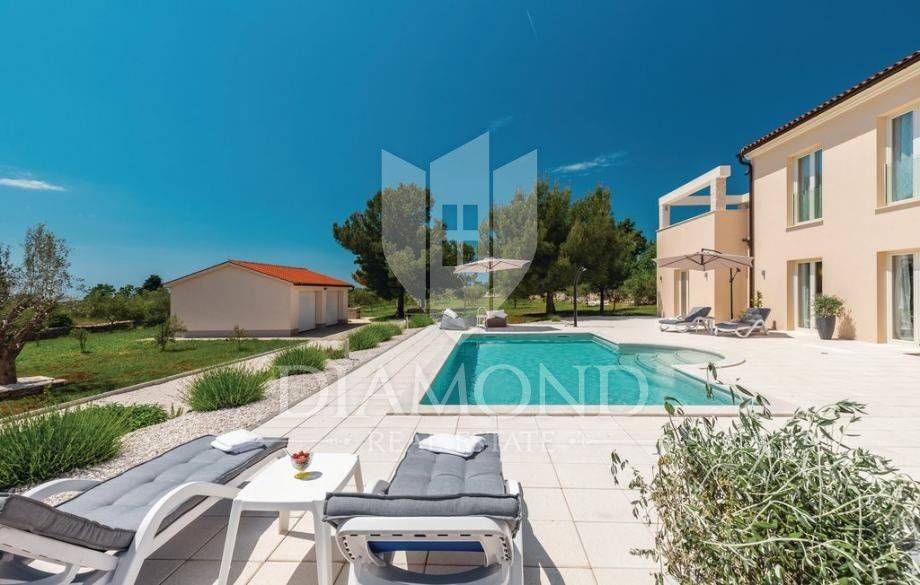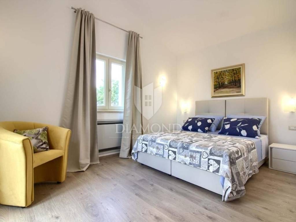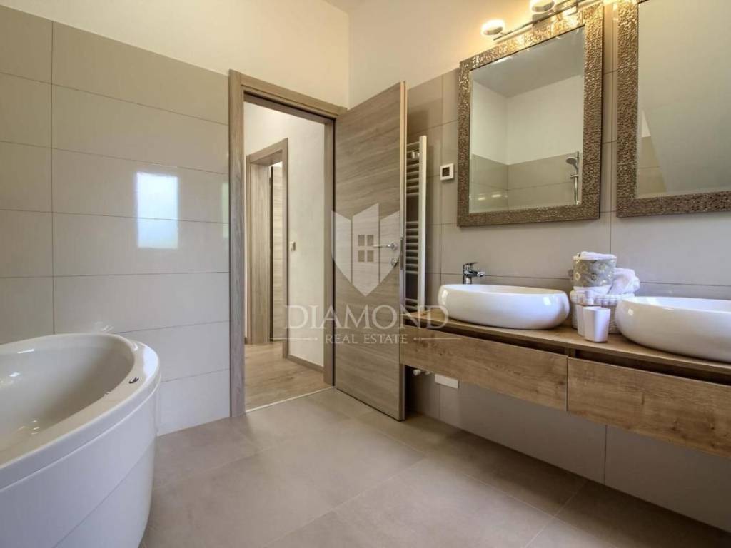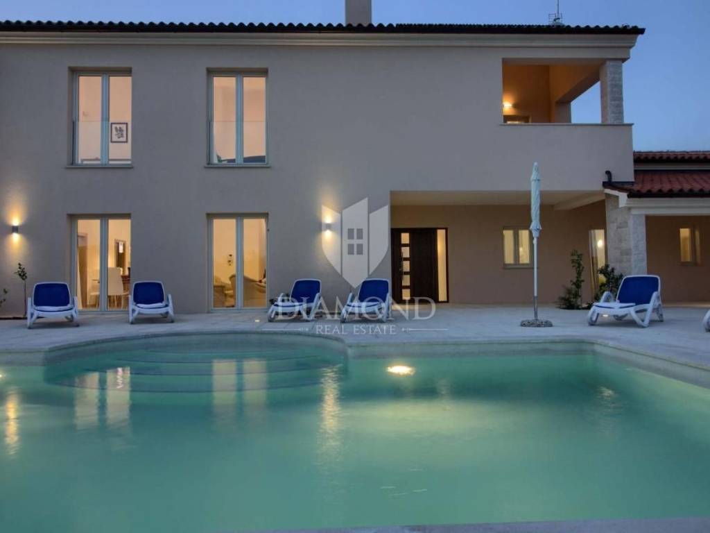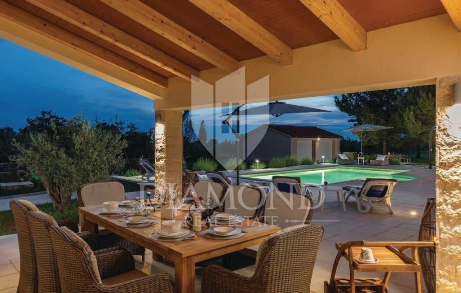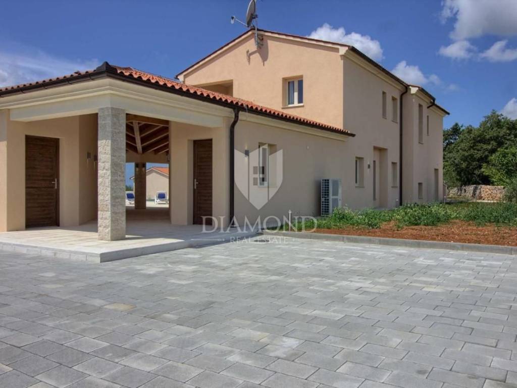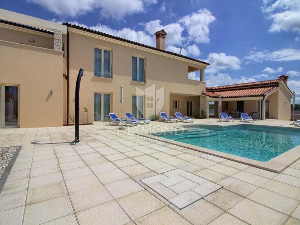 Vendiamo una bellissima villa nelle vicinanze di Dignano, costruita su un terreno con una superficie totale di 6282 metri quadrati, che offre anche la possibilità di lottizzazione. Questa bellissima trama è una storia completa con 120 ulivi piantati, una bellissima villa con piscina e un bellissimo giardino con profumate piante mediterranee. La casa è una casa a due piani, superficie abitabile di 399 mq, e combina un totale di quattro camere da letto, tre delle quali con bagno privato, un altro bagno separato, ripostiglio, due cucine con zona pranzo, due soggiorni e sauna e palestra. La casa è dotata di nove condizionatori d'aria, riscaldamento centralizzato ea pavimento, e l'impianto di riscaldamento e raffrescamento è realizzato con pompa di calore e inoltre coadiuvato da un impianto solare termico per riscaldamento a pavimento e acqua calda. La spaziosa piscina di 35 m2 con ingresso romano si trova nella completa privacy di un giardino recintato con vista aperta sull'oliveto. Sul terreno c'è un garage con due posti auto e una zona soggiorno separata in ombra naturale con barbecue. La parte coperta della terrazza è l'ideale per riunioni e cene estive con vista diretta sulla piscina che rende speciale l'atmosfera serale. Data la posizione, la casa ha un grande potenziale come affitto turistico e il nuovo proprietario può rilevare un'attività già avviata, o convertirla in una casa familiare con tutti i servizi necessari per una vita confortevole.