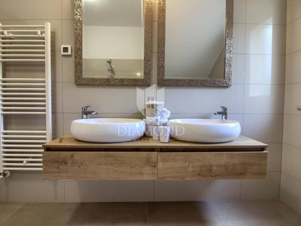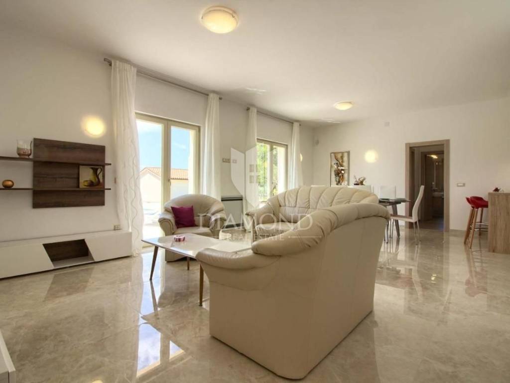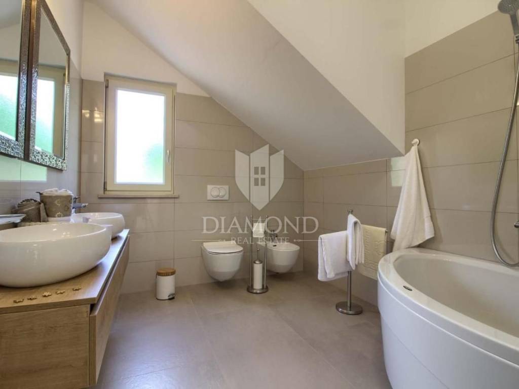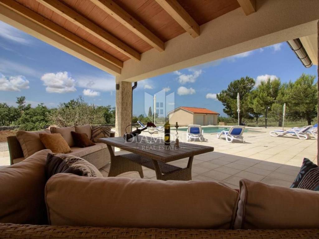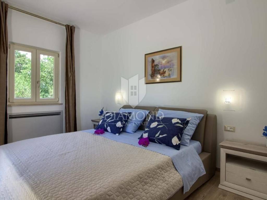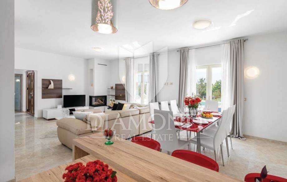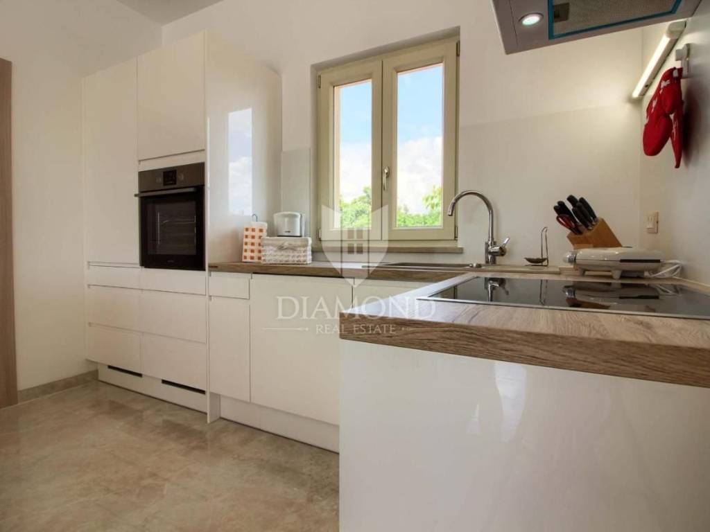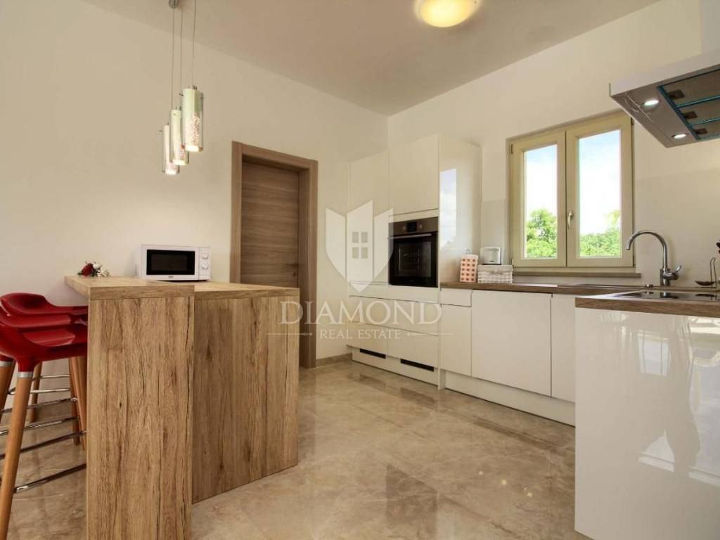 Vendiamo una bellissima villa nelle vicinanze di Dignano, costruita su un terreno con una superficie totale di 6282 metri quadrati, che offre anche la possibilità di lottizzazione. Questa bellissima trama è una storia completa con 120 ulivi piantati, una bellissima villa con piscina e un bellissimo giardino con profumate piante mediterranee. La casa è una casa a due piani, superficie abitabile di 399 mq, e combina un totale di quattro camere da letto, tre delle quali con bagno privato, un altro bagno separato, ripostiglio, due cucine con zona pranzo, due soggiorni e sauna e palestra. La casa è dotata di nove condizionatori d'aria, riscaldamento centralizzato ea pavimento, e l'impianto di riscaldamento e raffrescamento è realizzato con pompa di calore e inoltre coadiuvato da un impianto solare termico per riscaldamento a pavimento e acqua calda. La spaziosa piscina di 35 m2 con ingresso romano si trova nella completa privacy di un giardino recintato con vista aperta sull'oliveto. Sul terreno c'è un garage con due posti auto e una zona soggiorno separata in ombra naturale con barbecue. La parte coperta della terrazza è l'ideale per riunioni e cene estive con vista diretta sulla piscina che rende speciale l'atmosfera serale. Data la posizione, la casa ha un grande potenziale come affitto turistico e il nuovo proprietario può rilevare un'attività già avviata, o convertirla in una casa familiare con tutti i servizi necessari per una vita confortevole.