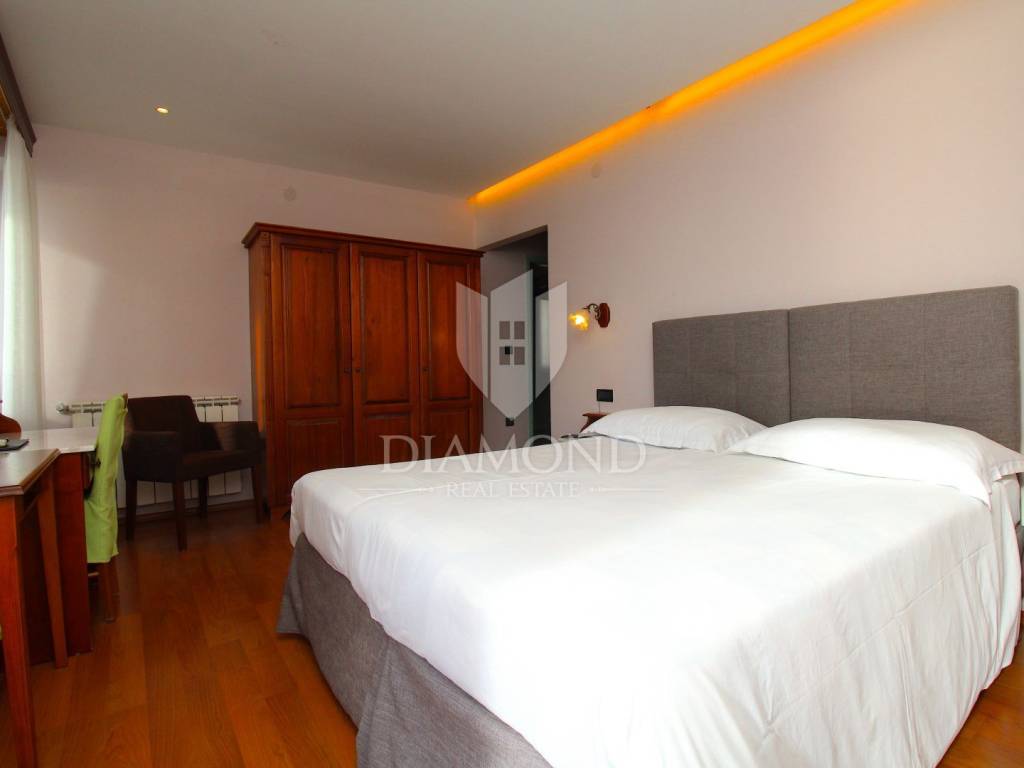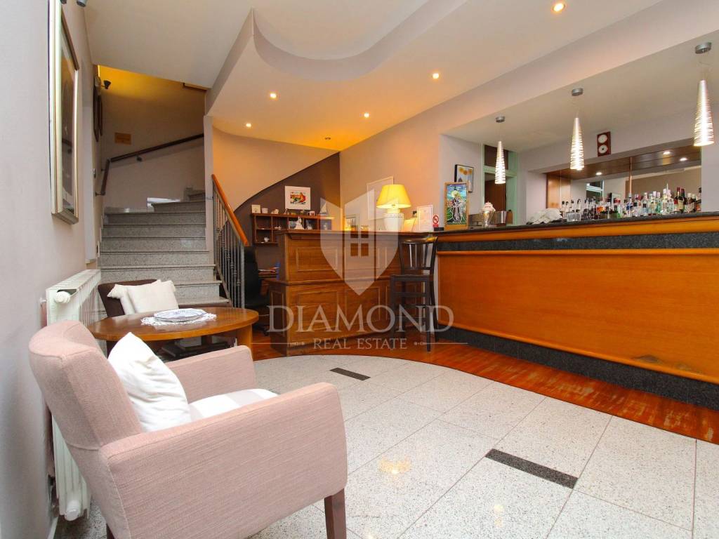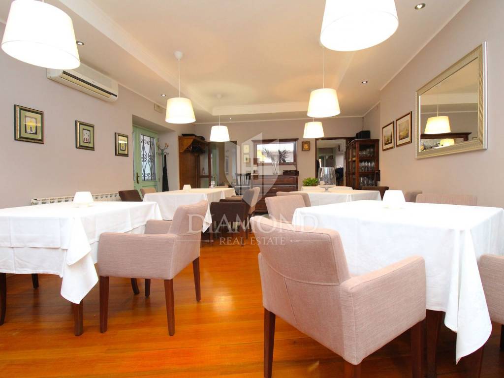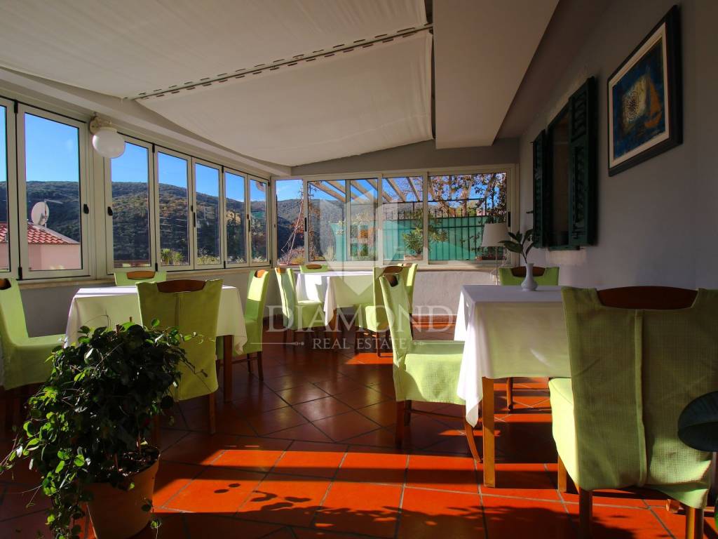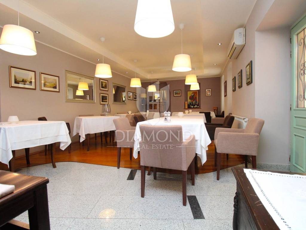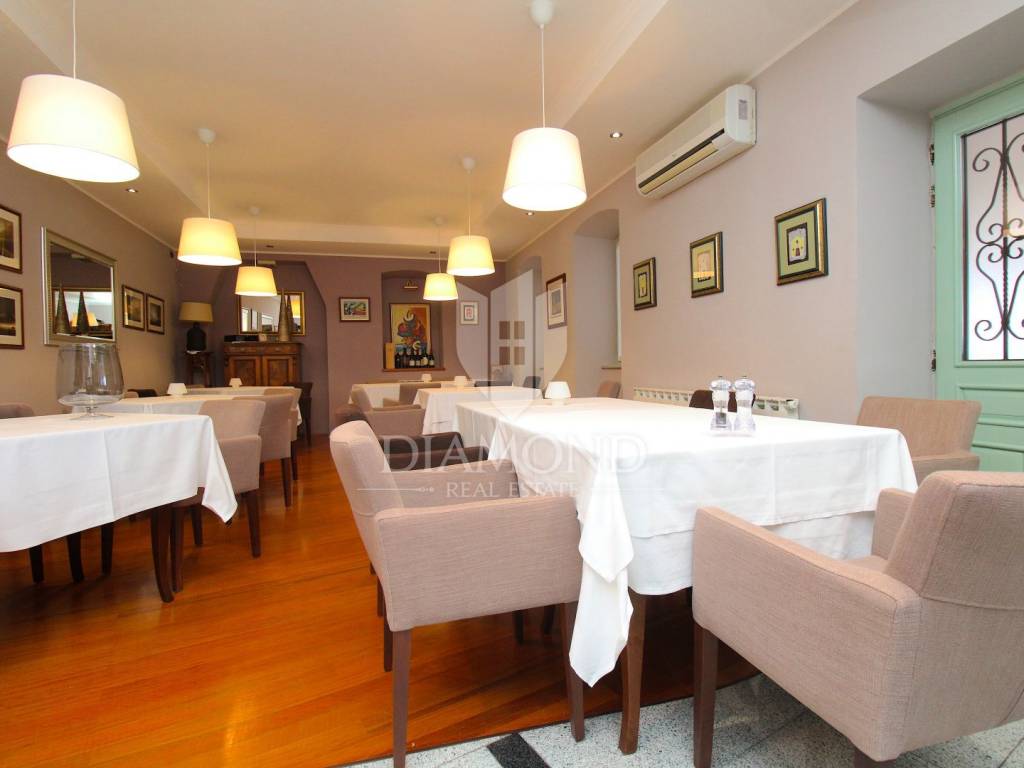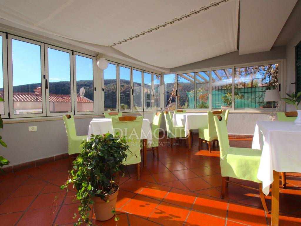 Rabac è il più grande centro turistico sulla costa orientale della penisola istriana, a circa 40 chilometri da Pola ea soli cinque chilometri da Labin. Adagiata sul Golfo del Quarnero, ai piedi della collina che protegge il luogo e mantiene un piacevole clima mediterraneo, Rabac è giustamente conosciuta come la "perla del Quarnero". Bellissimo ambiente, bella spiaggia di ciottoli, clima piacevole e vista sul Golfo del Quarnero, hanno attratto i turisti a metà del 19° secolo. Camminando lungo la passeggiata di Rabac, incontrerete questo famoso ristorante, che ha iniziato i suoi lavori nel 1993 e nel 2000 è stato notevolmente rinnovato. Al piano terra c'è uno spazio commerciale, attualmente vuoto, al primo piano c'è un ristorante, e al secondo piano ci sono le camere, di cui otto. Le camere sono doppie e triple, completamente arredate e accessoriate, ognuna ha il proprio bagno e terrazzo con una bellissima vista mare. L'intero edificio, così come ogni stanza, è dotato di aria condizionata e riscaldamento centralizzato. Tutta la storia è iniziata con un ristorante, per continuare ancora oggi con un piccolo albergo a conduzione familiare. Un ristorante molto famoso, presente in diverse guide gastronomiche nazionali ed estere. È ampiamente conosciuto in Istria e non solo. Un'attività ben avviata e il nome stesso di questa proprietà è un ottimo investimento per un futuro acquirente.
