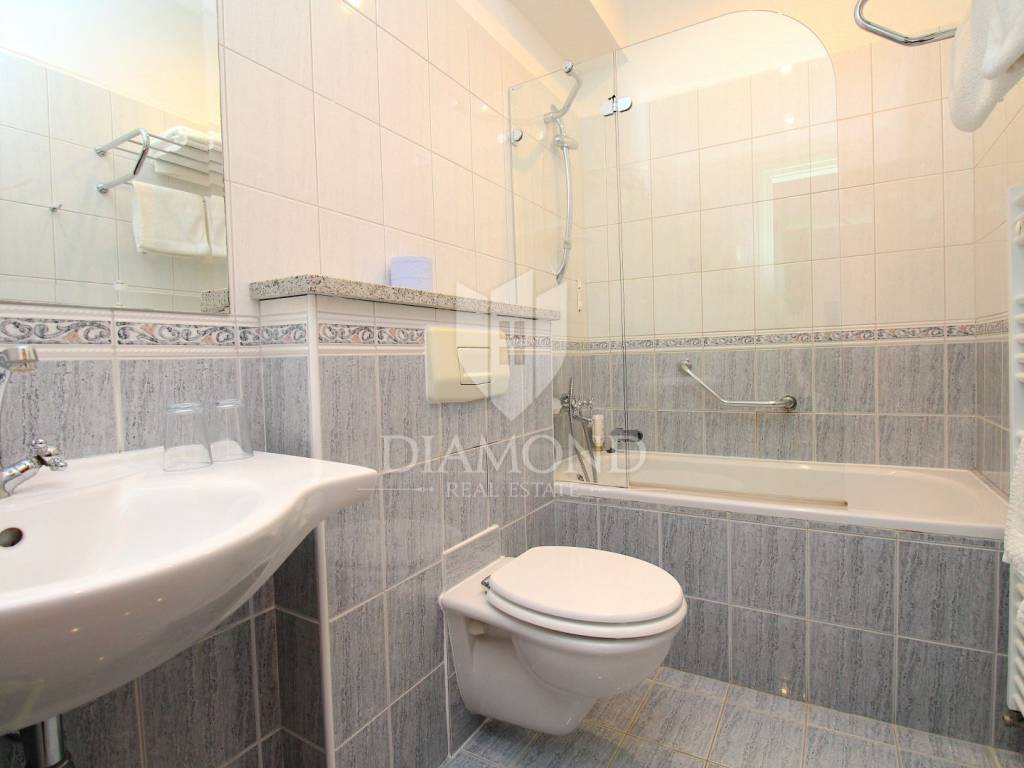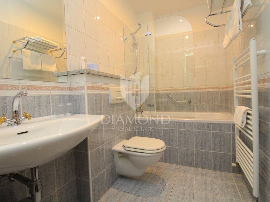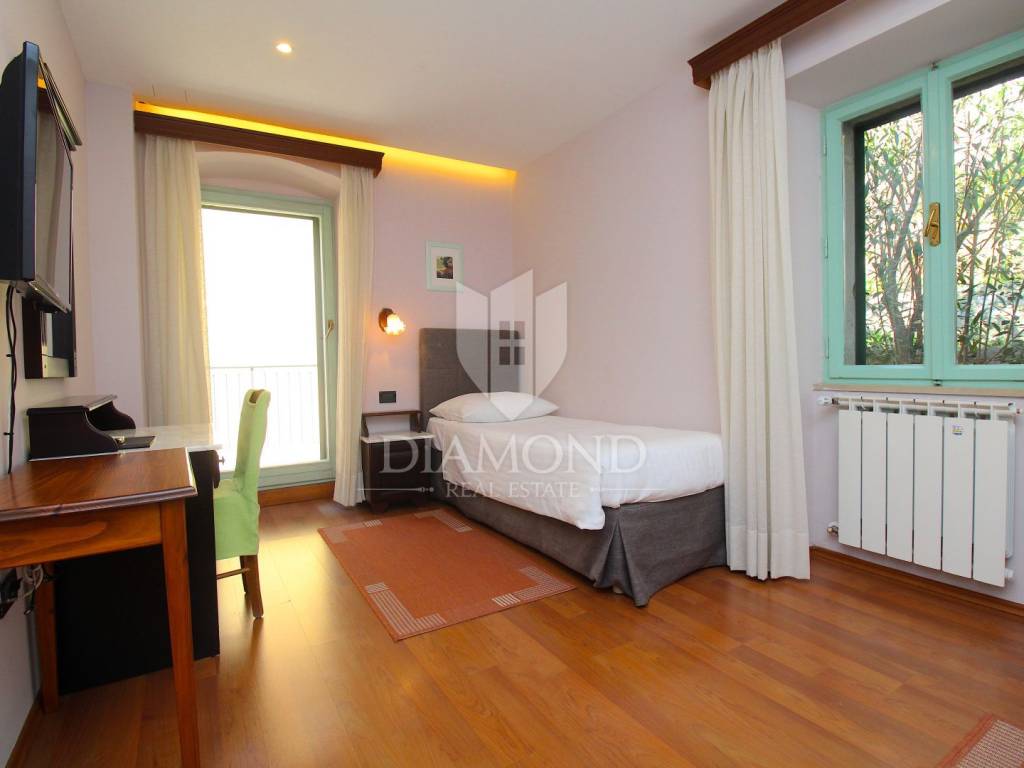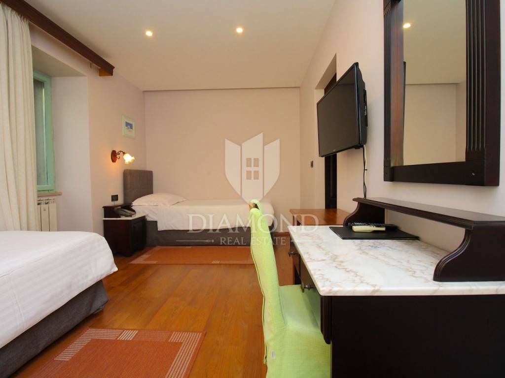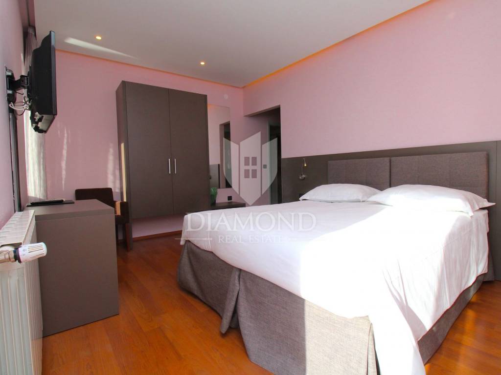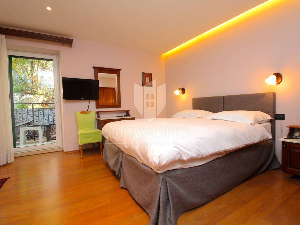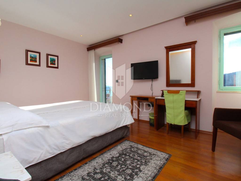 Rabac è il più grande centro turistico sulla costa orientale della penisola istriana, a circa 40 chilometri da Pola ea soli cinque chilometri da Labin. Adagiata sul Golfo del Quarnero, ai piedi della collina che protegge il luogo e mantiene un piacevole clima mediterraneo, Rabac è giustamente conosciuta come la "perla del Quarnero". Bellissimo ambiente, bella spiaggia di ciottoli, clima piacevole e vista sul Golfo del Quarnero, hanno attratto i turisti a metà del 19° secolo. Camminando lungo la passeggiata di Rabac, incontrerete questo famoso ristorante, che ha iniziato i suoi lavori nel 1993 e nel 2000 è stato notevolmente rinnovato. Al piano terra c'è uno spazio commerciale, attualmente vuoto, al primo piano c'è un ristorante, e al secondo piano ci sono le camere, di cui otto. Le camere sono doppie e triple, completamente arredate e accessoriate, ognuna ha il proprio bagno e terrazzo con una bellissima vista mare. L'intero edificio, così come ogni stanza, è dotato di aria condizionata e riscaldamento centralizzato. Tutta la storia è iniziata con un ristorante, per continuare ancora oggi con un piccolo albergo a conduzione familiare. Un ristorante molto famoso, presente in diverse guide gastronomiche nazionali ed estere. È ampiamente conosciuto in Istria e non solo. Un'attività ben avviata e il nome stesso di questa proprietà è un ottimo investimento per un futuro acquirente.