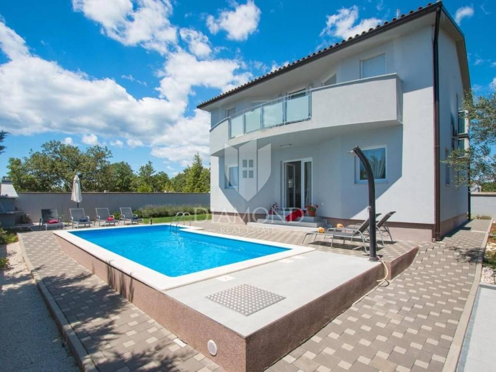 Dignano, dintorni, vendiamo una casa vacanze con piscina in una splendida posizione. Questa bella proprietà è composta da piano terra e primo piano, superficie totale di 200 m2. Il piano terra è composto da un comodo soggiorno con accesso alla piscina sulla spiaggia, cucina completamente attrezzata e sala da pranzo. C'è anche un bagno per gli ospiti e una camera da letto con bagno privato. Al piano superiore ci sono altre tre camere da letto, tutte con bagno privato e balcone con bellissima vista sul paesaggio circostante e sul mare. Ogni camera è dotata di aria condizionata e TV satellitare. Il giardino di 570 mq è completamente recintato e come tale garantisce tranquillità e privacy. È adornato con una bella piscina di 28 m2, una cucina estiva e una bella terrazza coperta con vista sulla piscina. Il giardino è curato e decorato con piante mediterranee piantate e frutti vari. La proprietà è ideale come casa vacanze o come investimento aziendale in quanto dispone di una consolidata attività di noleggio turistico. Un negozio si trova a 2 km e la prima spiaggia a 6 km a Fasana.
