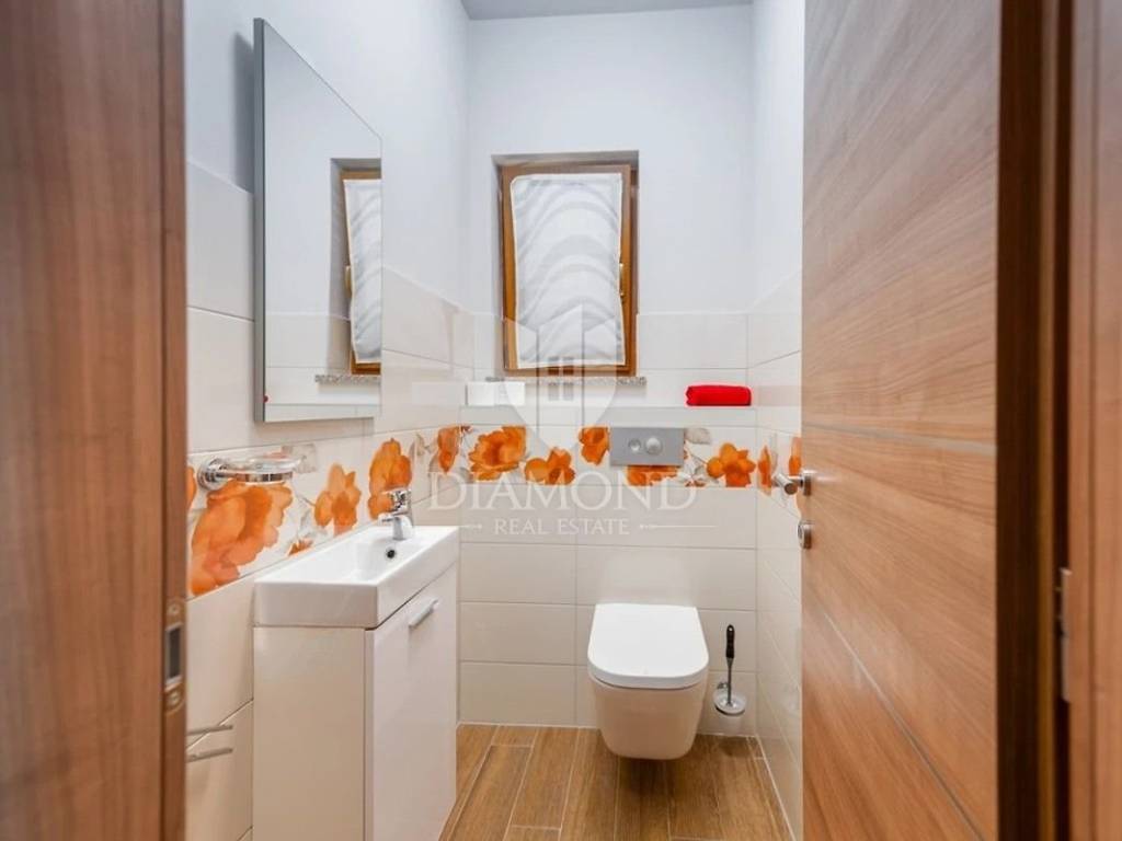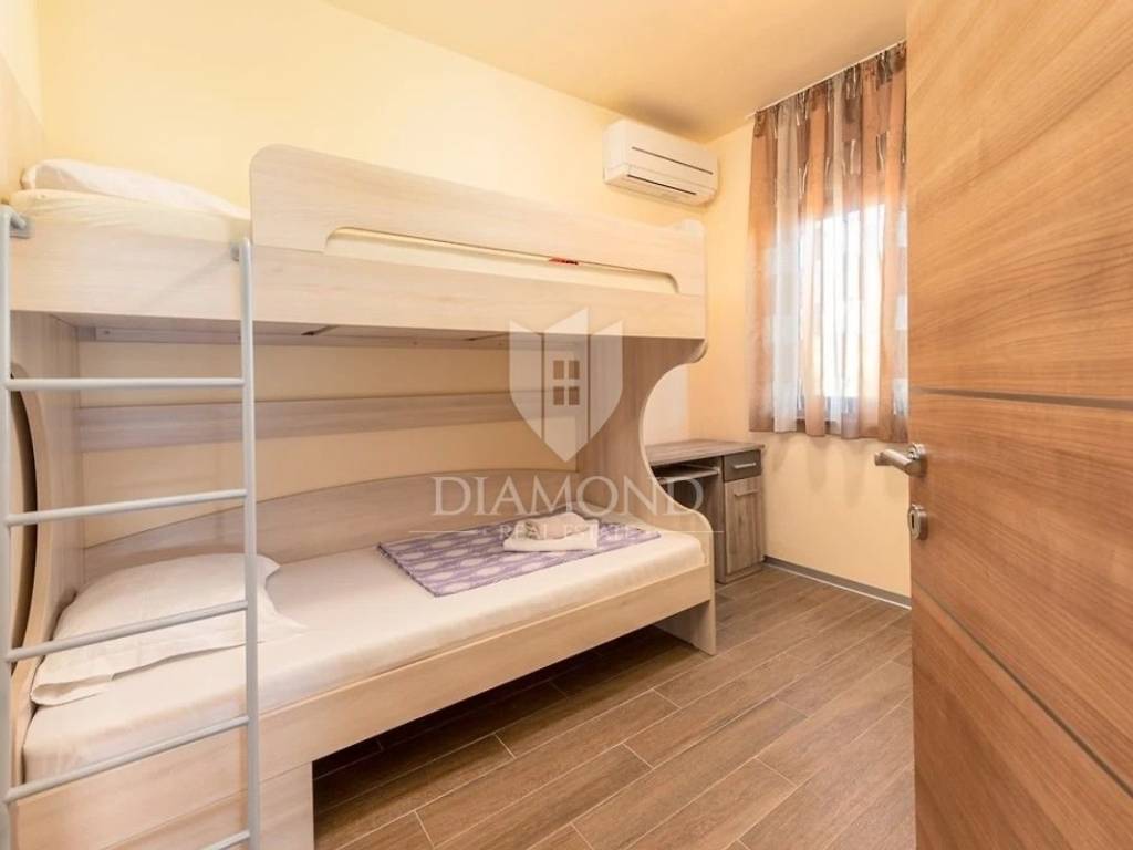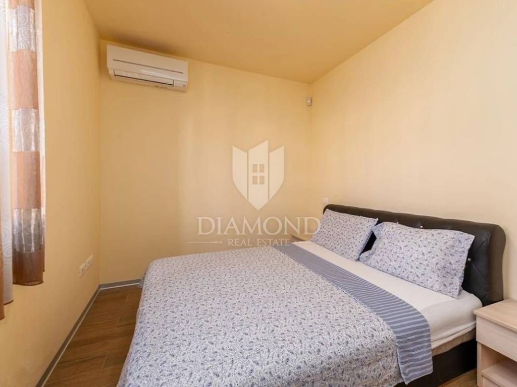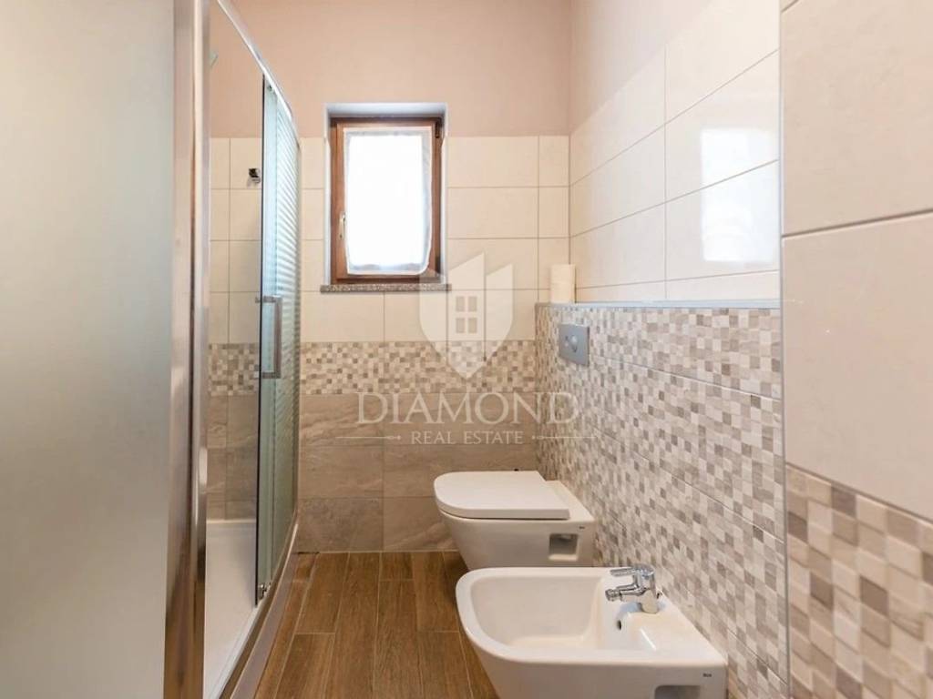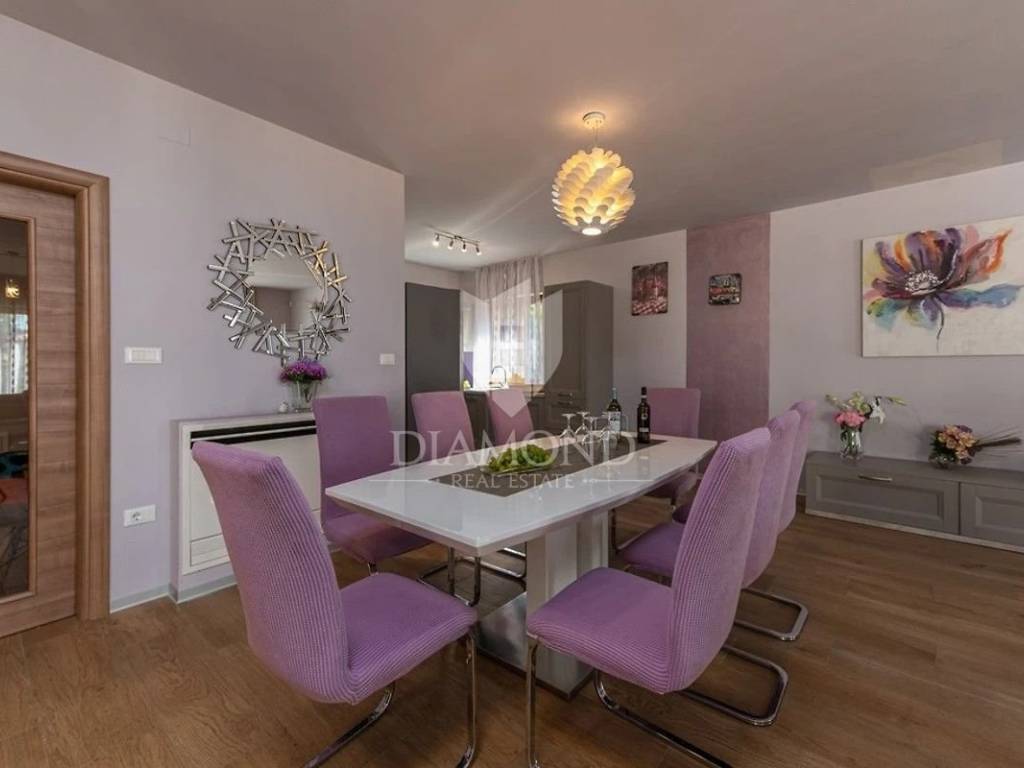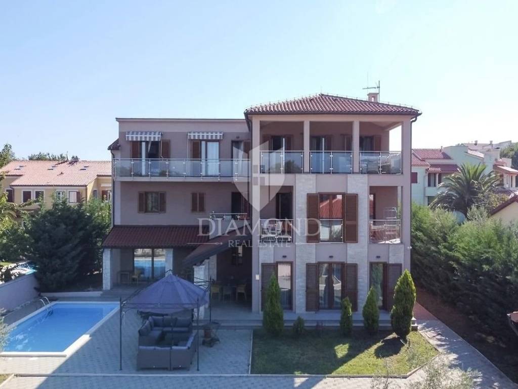 Zona Medolino, casa con quattro appartamenti vicino al mare. Non lontano dal centro di Medolino, nelle immediate vicinanze del mare, vendiamo una bella casa con quattro appartamenti e una piscina. L'immobile è suddiviso su tre piani. Su tutto il primo piano si trova un appartamento composto da un ampio soggiorno collegato alla cucina e alla sala da pranzo, dal soggiorno si accede anche alla piscina, una lavanderia, un bagno e tre camere da letto, di cui una con proprio toilette. Il secondo piano è composto da due appartamenti identici composti da soggiorno open space collegato alla sala da pranzo e alla cucina, un bagno, due camere da letto ed entrambi gli appartamenti hanno un terrazzo. Anche il quarto appartamento si trova sull'intero terzo piano ed è composto da un ampio soggiorno collegato alla cucina e alla sala da pranzo, tre camere da letto e un bagno in comune. L'appartamento al terzo piano ha il proprio terrazzo. Il problema del riscaldamento e del raffreddamento è stato risolto installando condizionatori d'aria e riscaldamento centralizzato. Sono previsti sei posti auto. Questa proprietà è ideale per un investimento turistico data la sua posizione e la vicinanza al mare. È ideale anche per una vita familiare tranquilla vicino a tutti i servizi ed eventi vari. La casa viene venduta intera, ma è possibile acquistare ogni appartamento separatamente.