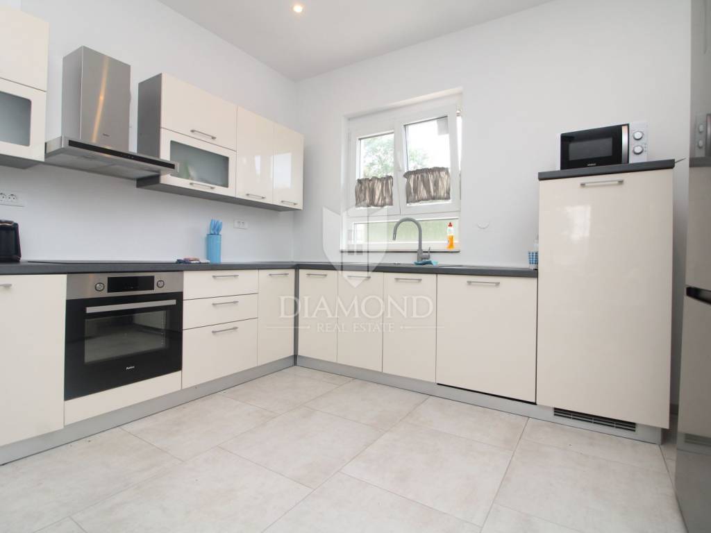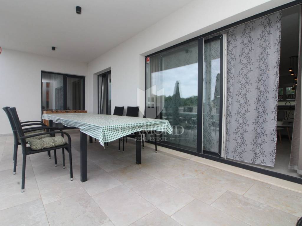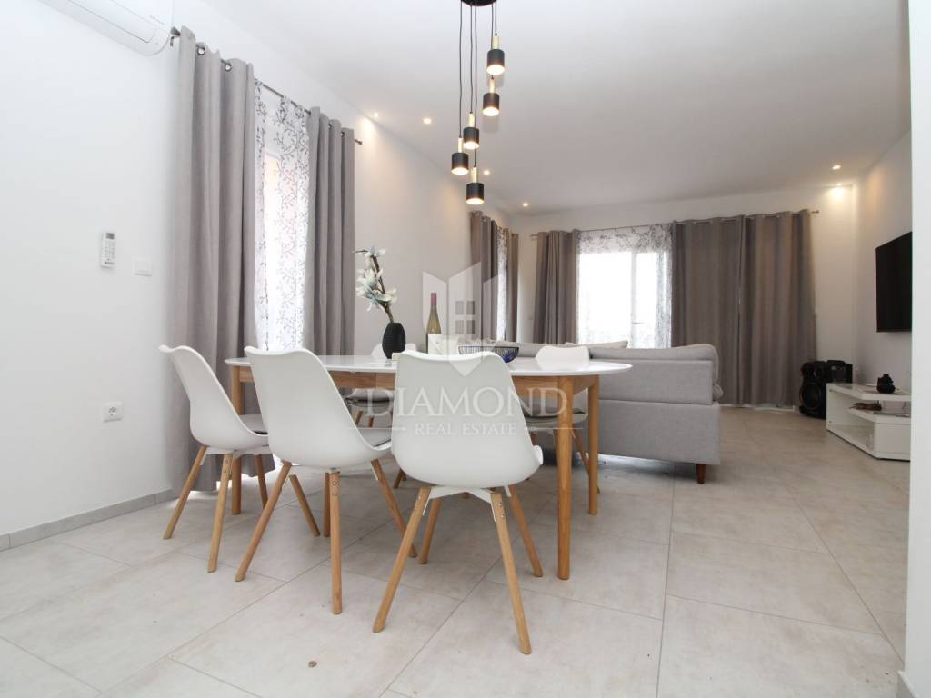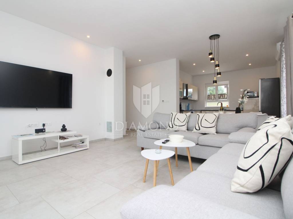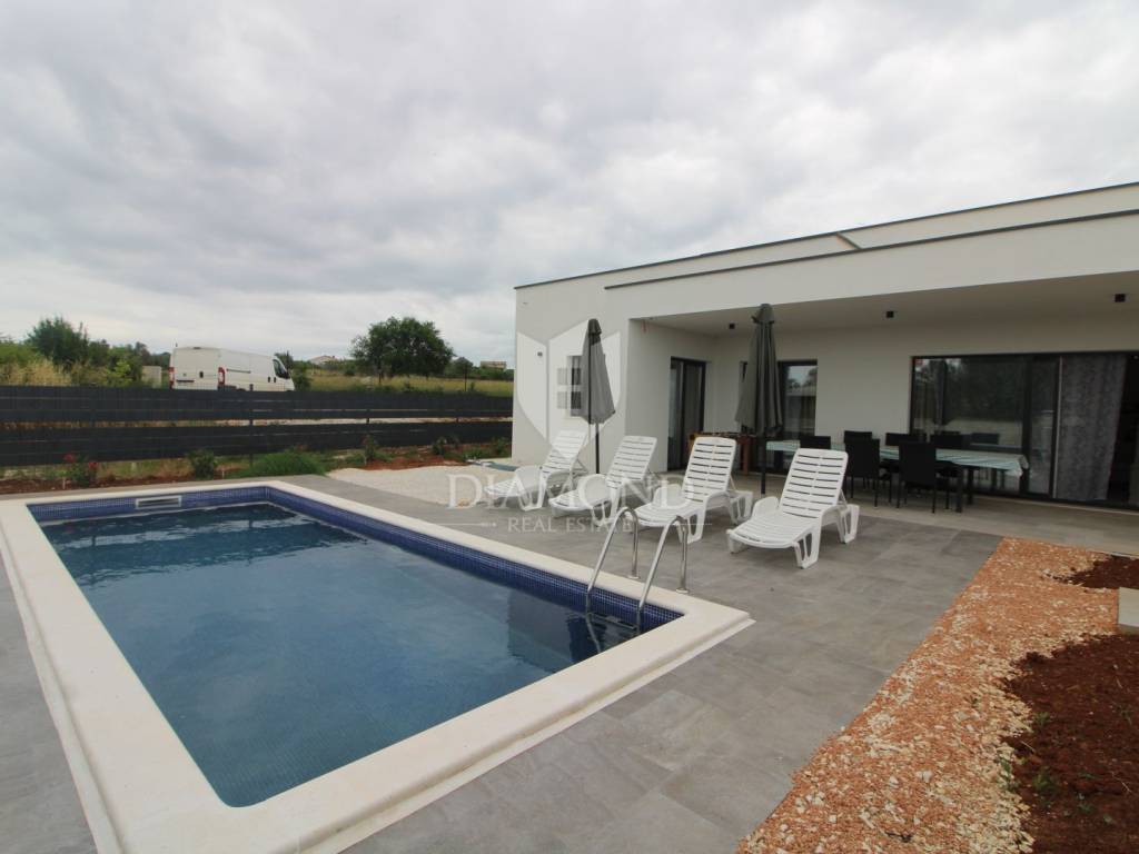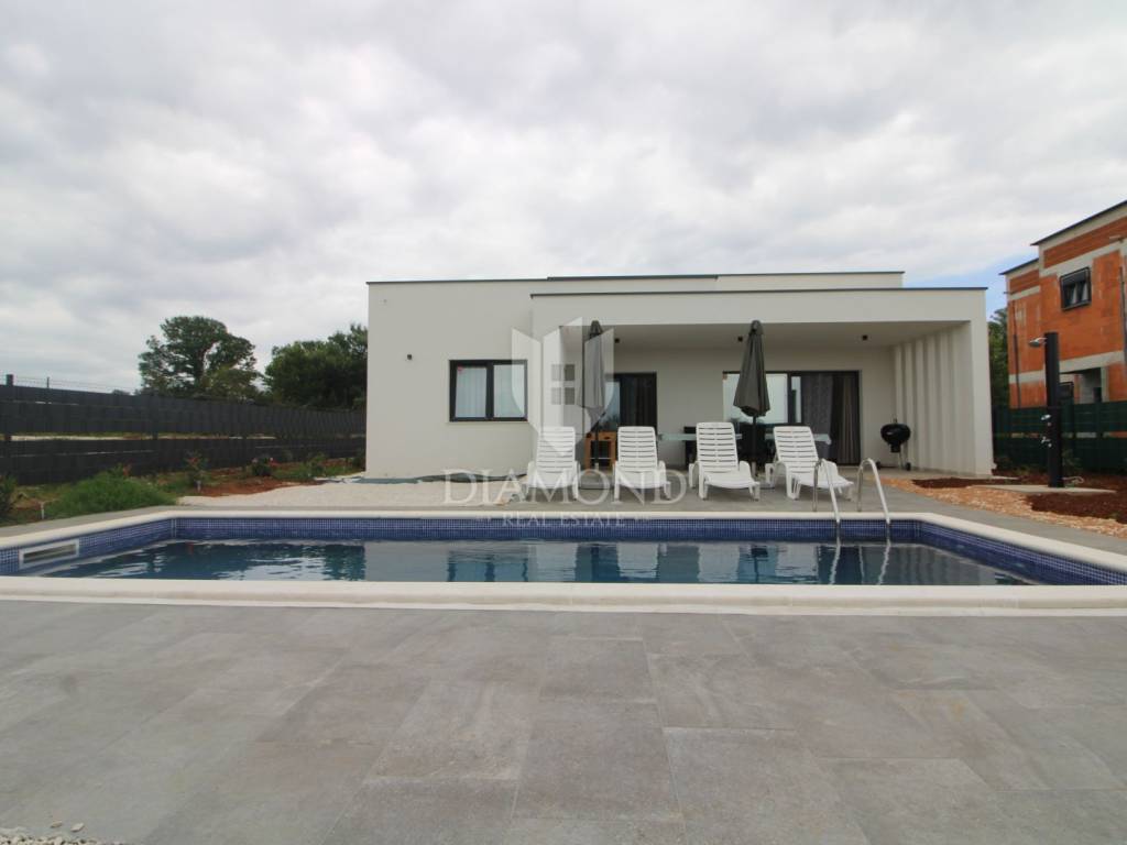 Questa bellissima casa ad un piano dal design moderno si trova a pochi passi dal centro di Dignano. Ha una superficie totale di 114 m2 ed è composto da tre camere da letto, due bagni, un locale tecnico e una zona giorno open-concept che unisce cucina, sala da pranzo e soggiorno con accesso ad un terrazzo coperto con una bellissima vista sul la piscina e il giardino. In tutta la casa è stato installato il riscaldamento a pavimento e in ogni stanza sono stati installati i condizionatori d'aria. Inoltre c'è anche la possibilità di installare un caminetto nel soggiorno per creare ulteriore atmosfera.
