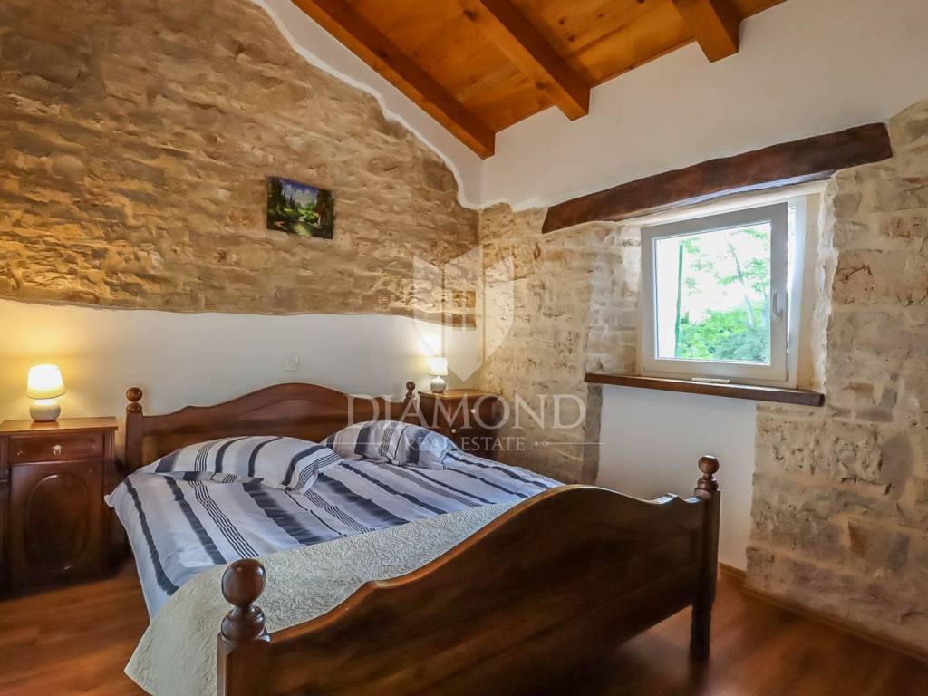 Istria Centrale è una regione che offre splendidi paesaggi naturali, un ricco patrimonio culturale, un'architettura autentica e un'ottima scena gastronomica. I visitatori possono esplorare città medievali, godersi la natura, assaggiare le prelibatezze locali e vivere un'atmosfera unica. Un grande vantaggio di questa parte dell'Istria è la sua eccellente connettività ai trasporti, che consente un accesso rapido a tutte le destinazioni turistiche desiderate e alle spiagge più vicine, poiché si trovano a una distanza approssimativamente uguale da Rovigno, Parenzo e Pola, a circa venti chilometri di distanza. Questa bellissima casa ristrutturata si trova in un piccolo paese vicino a Žminj, in una strada tranquilla e appartata.