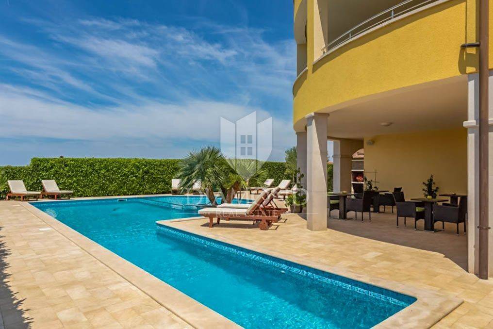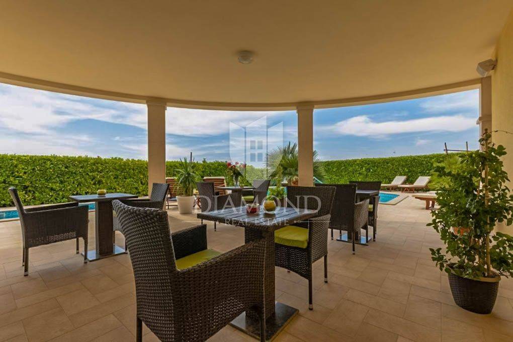 Un'ampia sala da pranzo con accesso a una terrazza coperta vi permette di gustare ogni pasto con una vista panoramica sul giardino. E parlando del giardino, lì si trova una maestosa piscina di 80 mq - il luogo ideale per rinfrescarsi e rilassarsi sotto il sole istriano. L'hotel offre anche uno spazioso deposito nel seminterrato, ideale per la manutenzione della struttura e per soddisfare tutte le esigenze degli ospiti. Con un totale di 12 posti auto, di cui 7 coperti, i vostri ospiti avranno sempre un parcheggio sicuro e comodo.